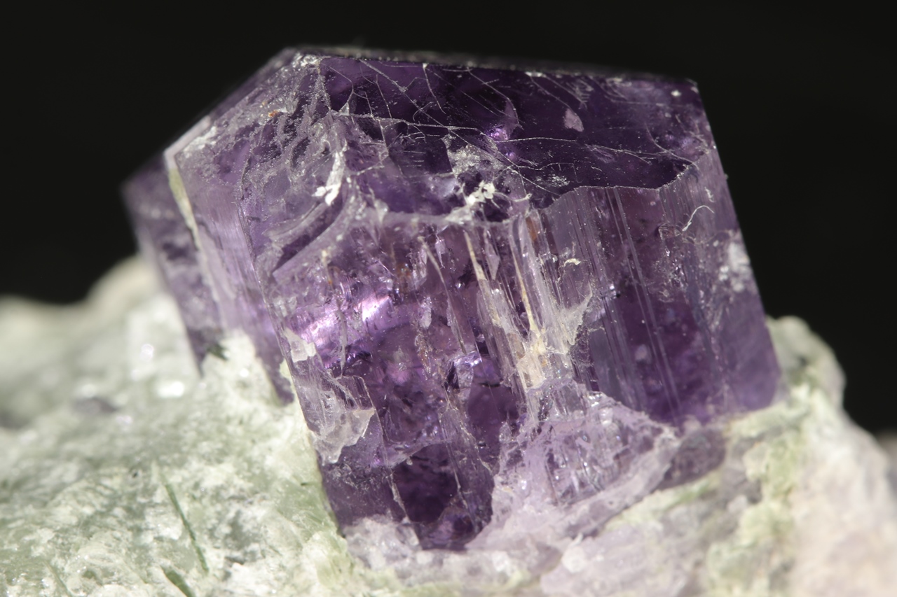 Sehr glänzender, intensiv violetter, geriefter Skapolith-Kristall mit den Abmessungen 19 x 19 x 16 mm aus den neuen Funden aus Afghanistan.