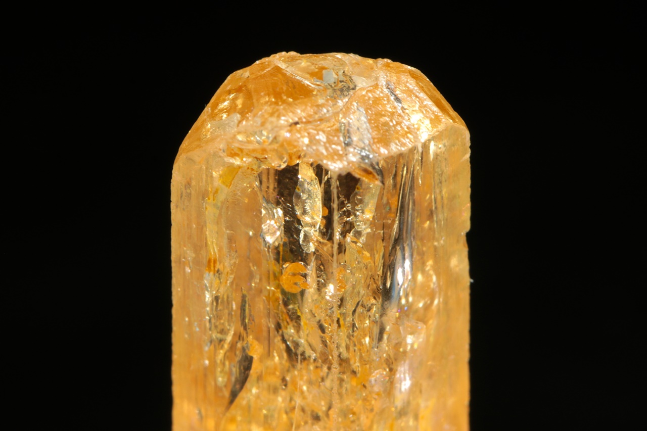 A beautifully yellow Topaz crystal with a well-developed prism.