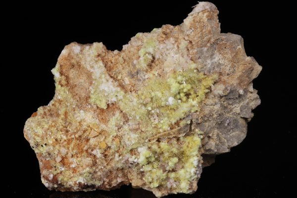 Velmi bohatá ukázka žlutých jehlicovitých krystalů extrémně vzácného carlhintzeitu, hydratovaného fluoridu hliníku a vápníku. Tento minerál byl poprvé na světě popsán z Hagendorfu v Německu. Nově nalezené vzorky z Číny jsou však dosud nejbohatší a nejestetičtější ukázky tohoto minerálu. Carlhintzeit se a tomto vzorku vyskytuje s čirými krystaly rovněž velmi vzácného creeditu.