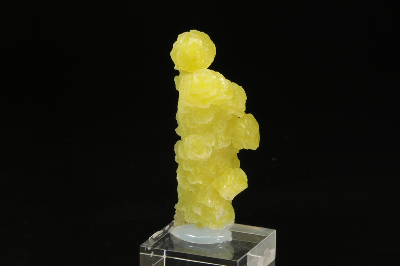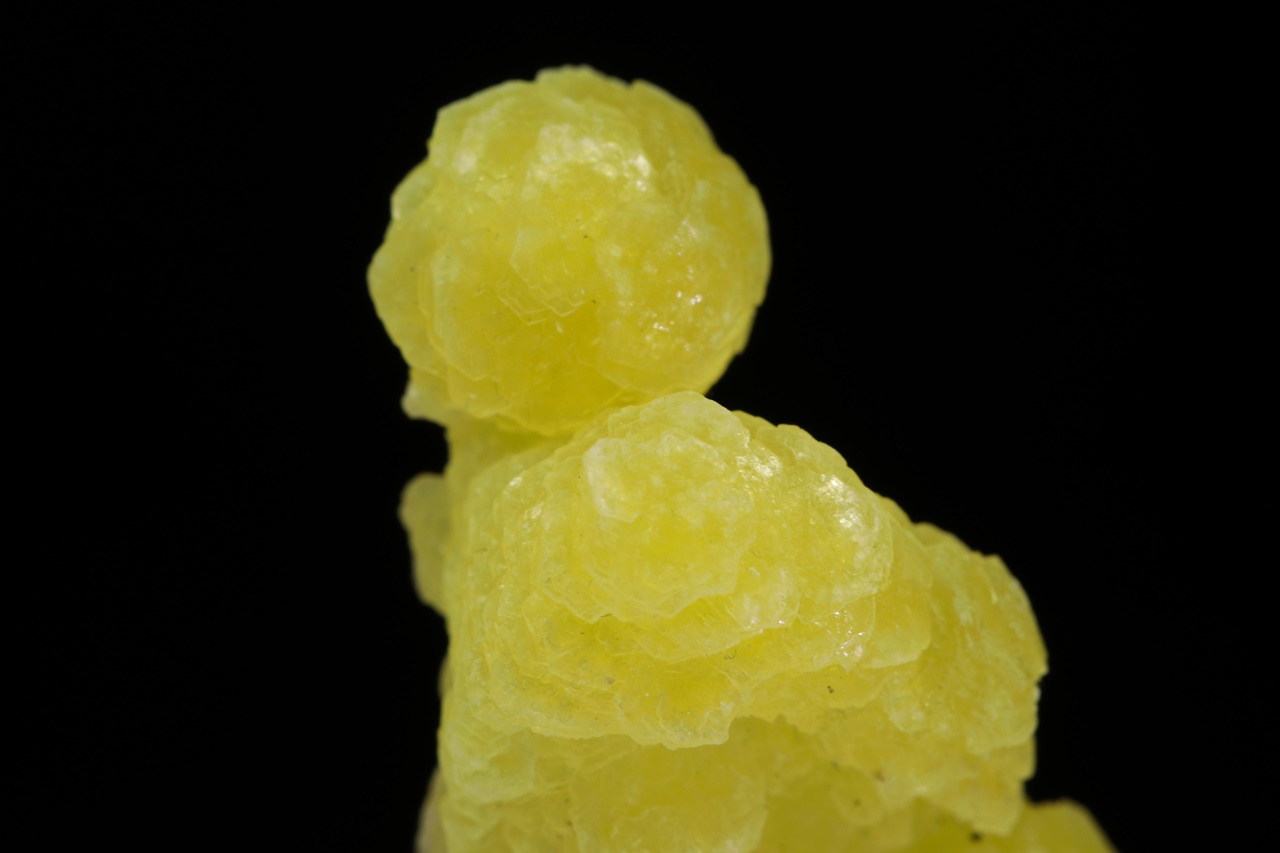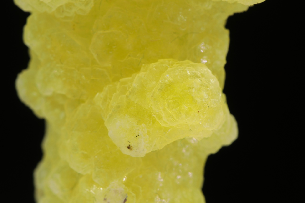 Ledvinité agregáty intenzivně žlutého, voskově lesklého hydroxidu hořčíku.