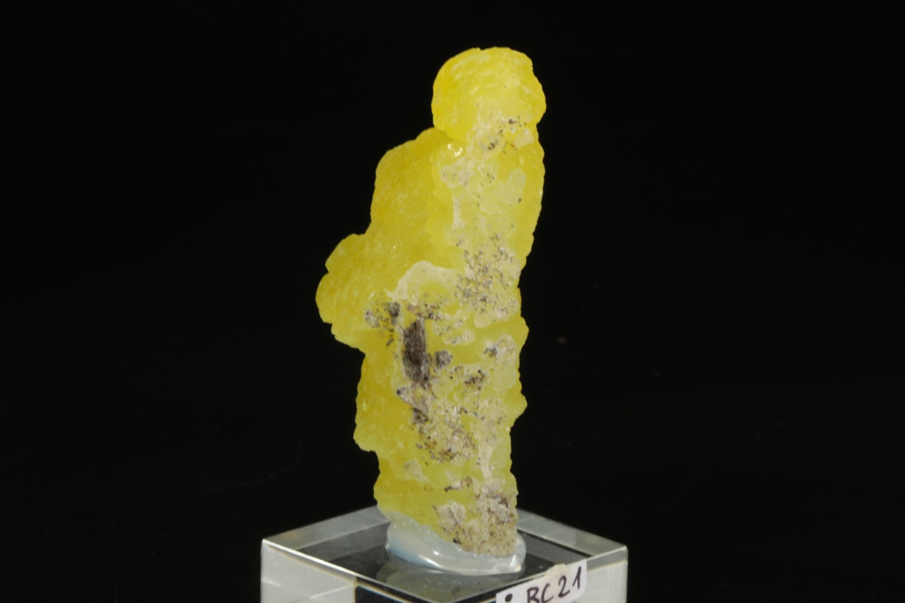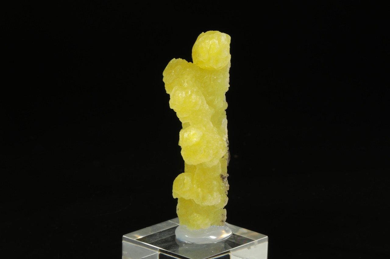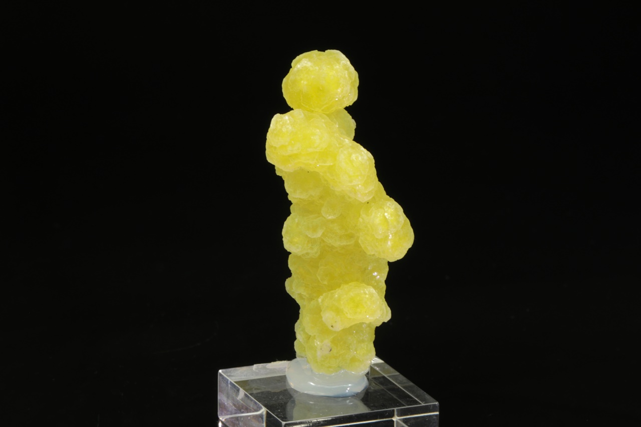 Ledvinité agregáty intenzivně žlutého, voskově lesklého hydroxidu hořčíku.