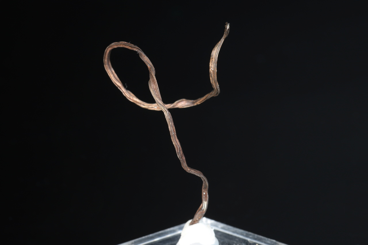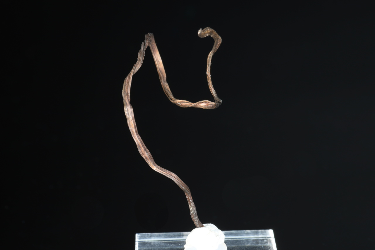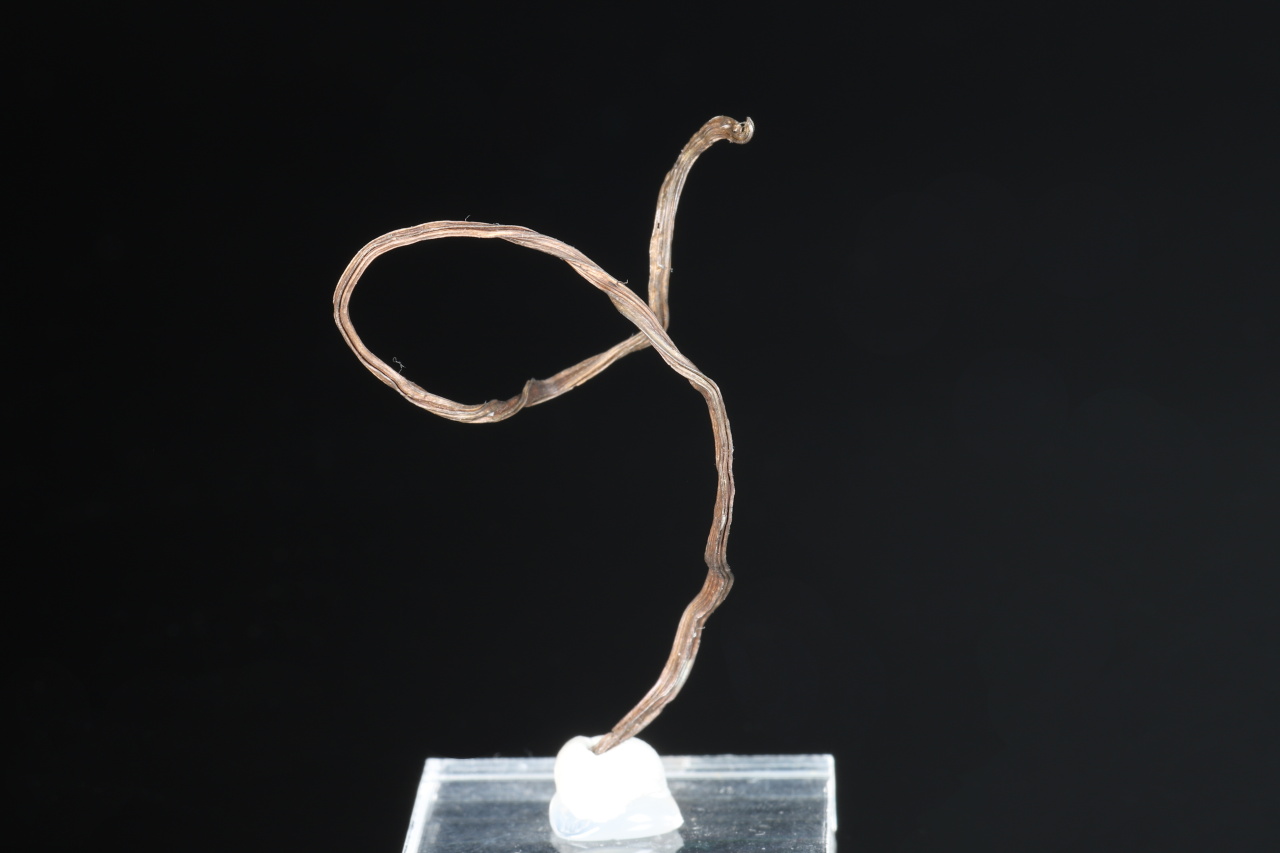 Volný kroucený asi 1-1,5 mm silný drát ryzího stříbra z dolu Himmelfürst nedaleko Freibergu. Elegantní historická  ukázka stříbra z klasického saského naleziště.