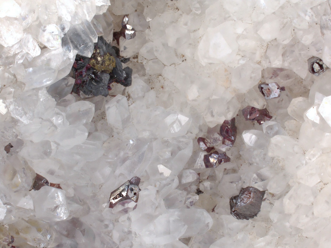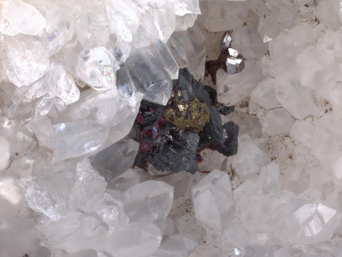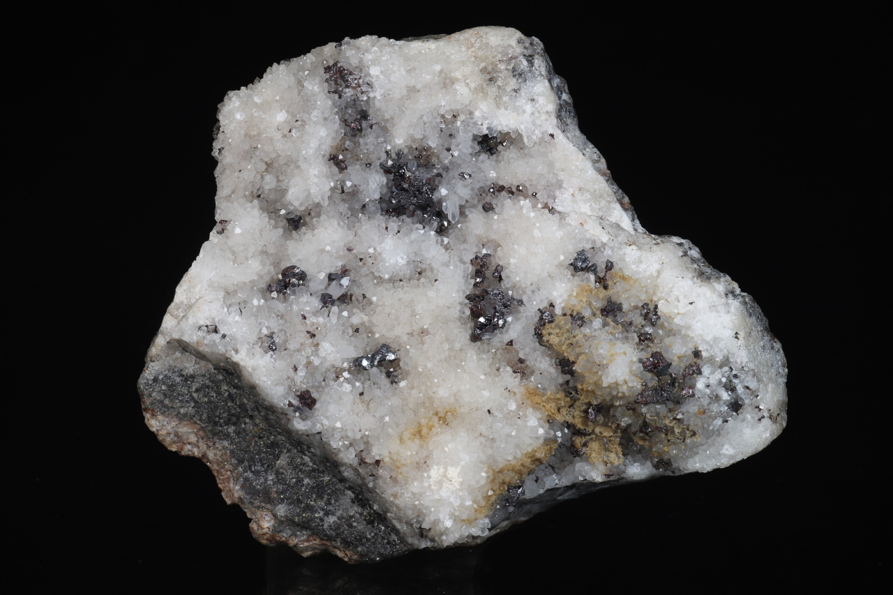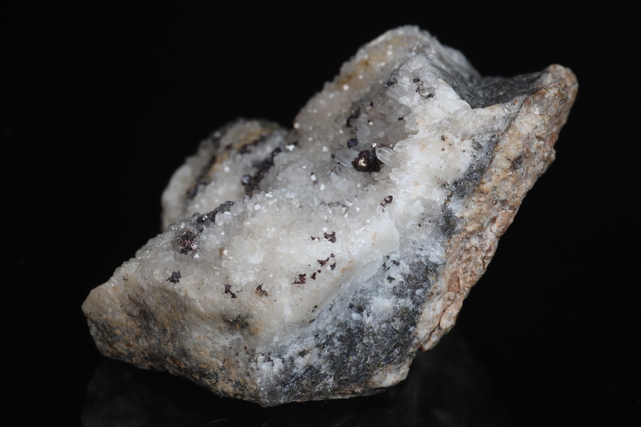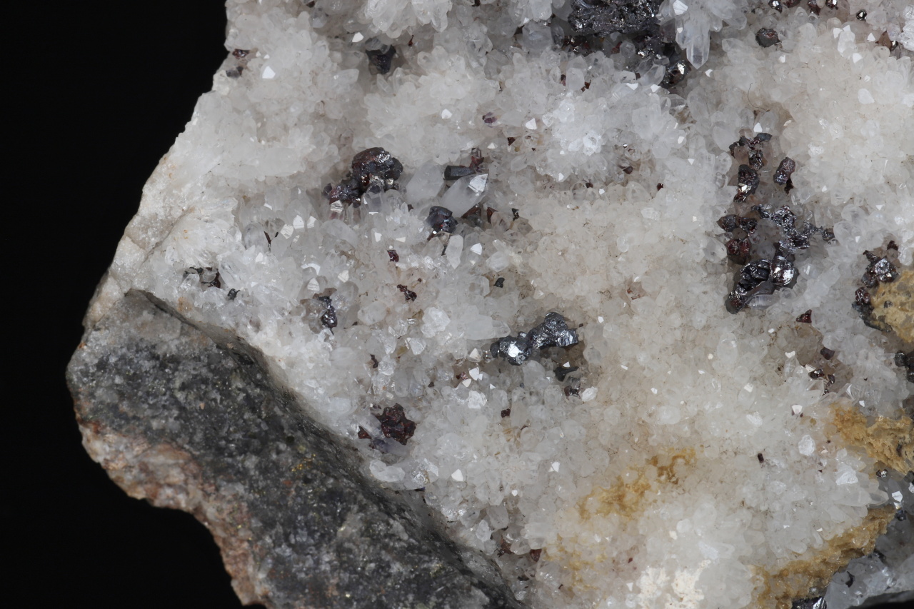 Historický velmi bohatý vzorek minerálů stříbra ze slavného naleziště Freiberg. Na vzorku je množství dokonale ukončených krystalů i zrn pyrargyritu o velikosti cca 2-3 mm s plochými ocelově šedými krystaly polybazitu a především se vzácným xantokonem. Xantokon tvoří drobné, zhruba 1 mm velké oranžové lesklé krystaly, kterých je na celém vzorku minimálně 8. Oblast Freibergu je pro xantokon typovou lokalitu.