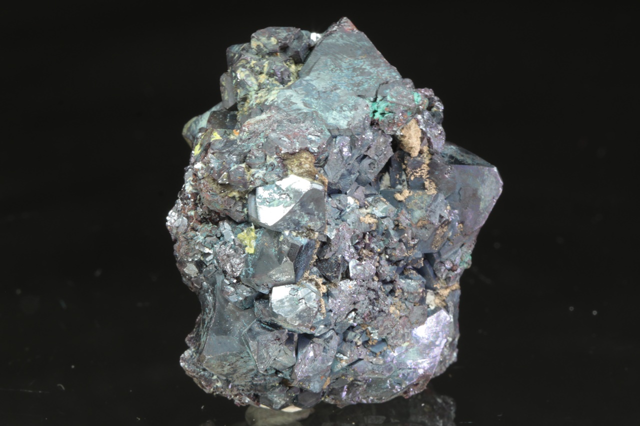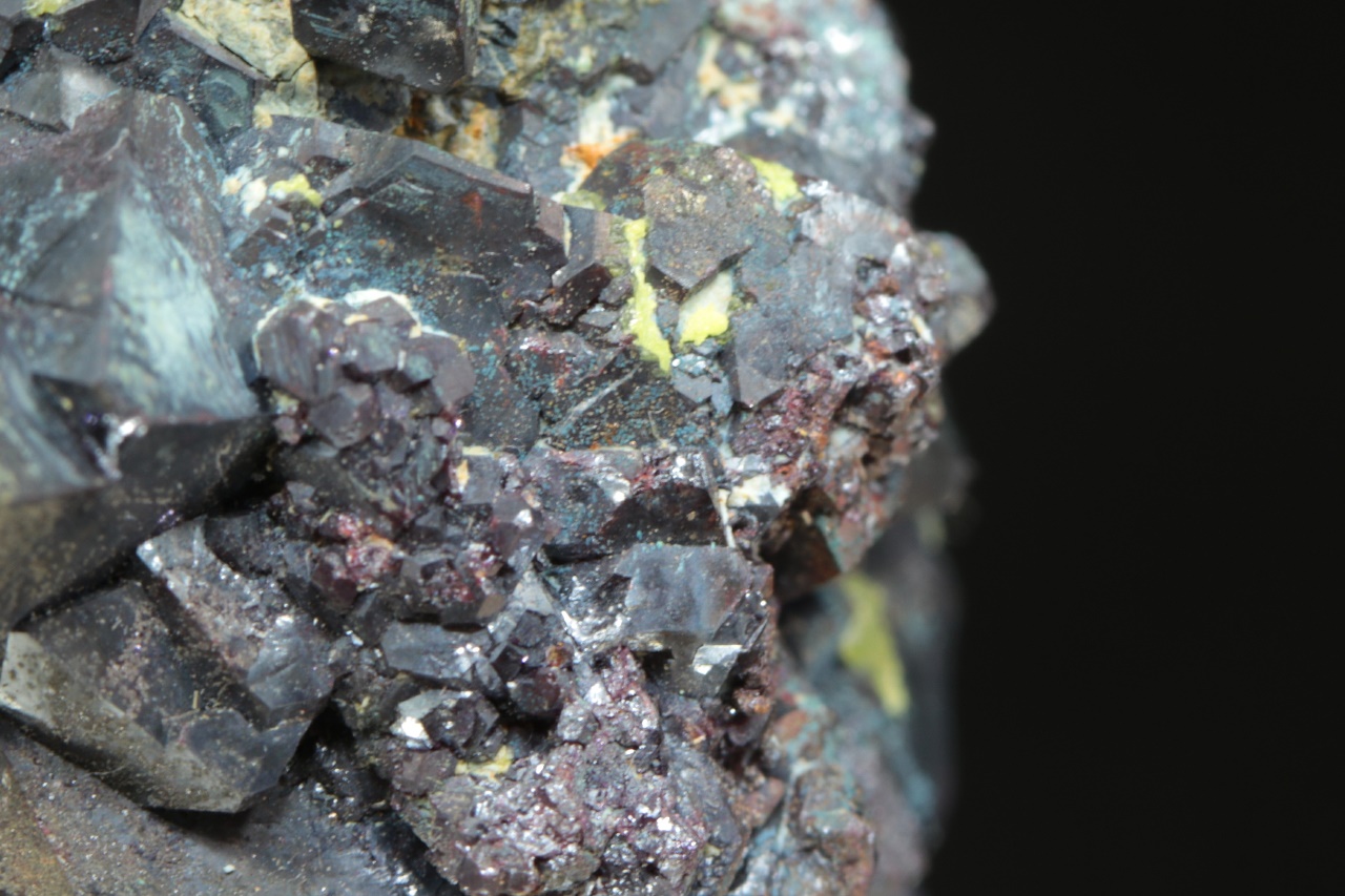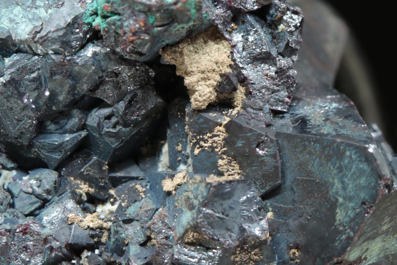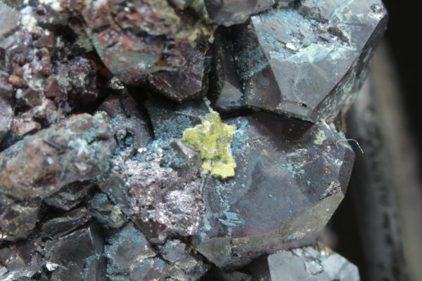 Drúza kovově lesklých oktaedrů kupritu s keříky bílého stříbra. Na kuprit pak narůstají žluté krystaly velmi vzácného jodidu mědi a stříbra – miersitu popsaného pouze na několika světových lokalitách. Největší krystal kupritu je 1 cm velký.