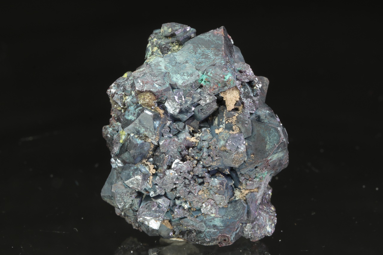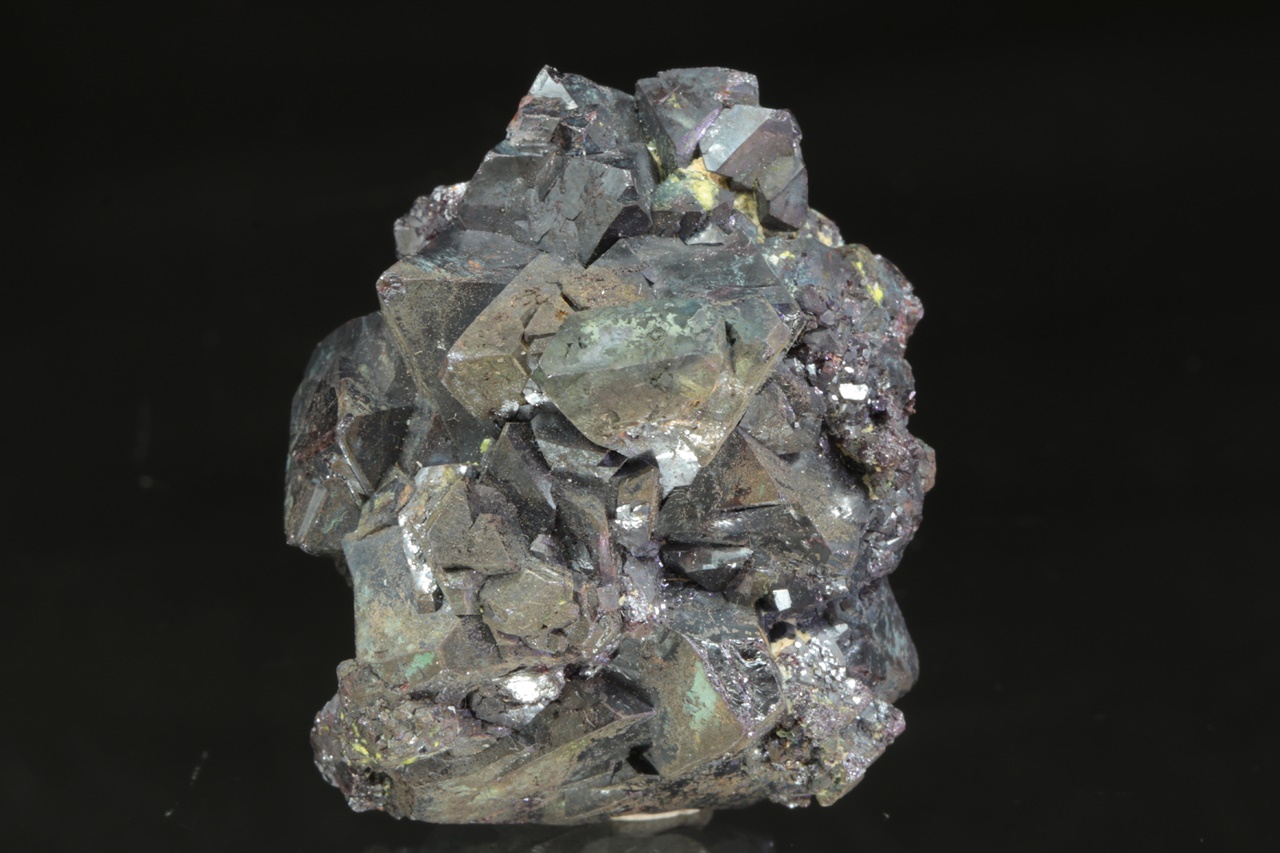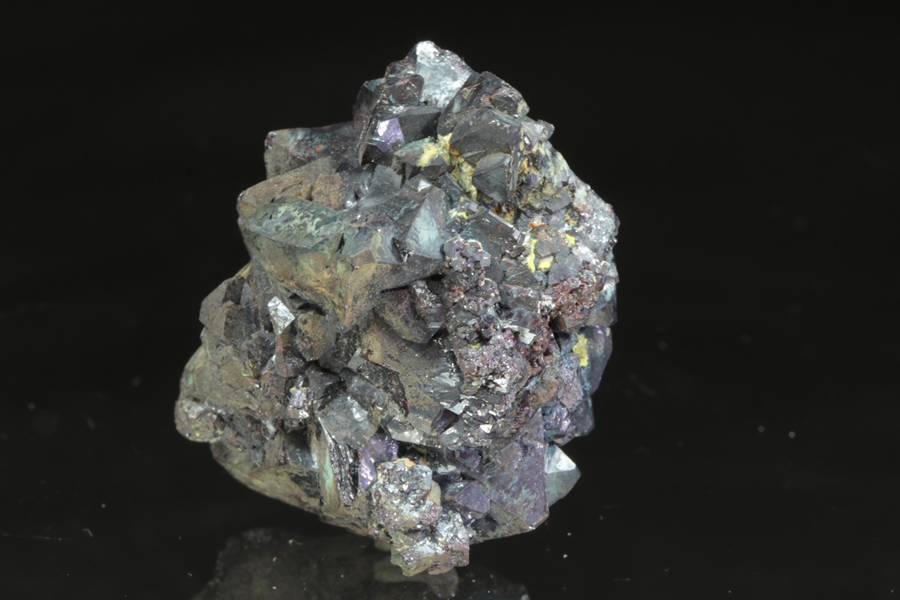 Drúza kovově lesklých oktaedrů kupritu s keříky bílého stříbra. Na kuprit pak narůstají žluté krystaly velmi vzácného jodidu mědi a stříbra – miersitu popsaného pouze na několika světových lokalitách. Největší krystal kupritu je 1 cm velký.