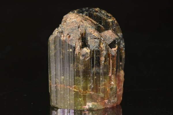 Zonální krystal turmalínu s červeným středem a zeleným lemem tzv. meloun. Krystal je ze spodní části vyleštěný.