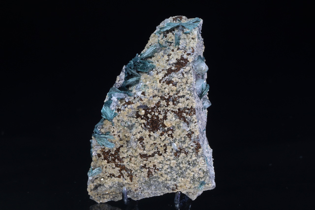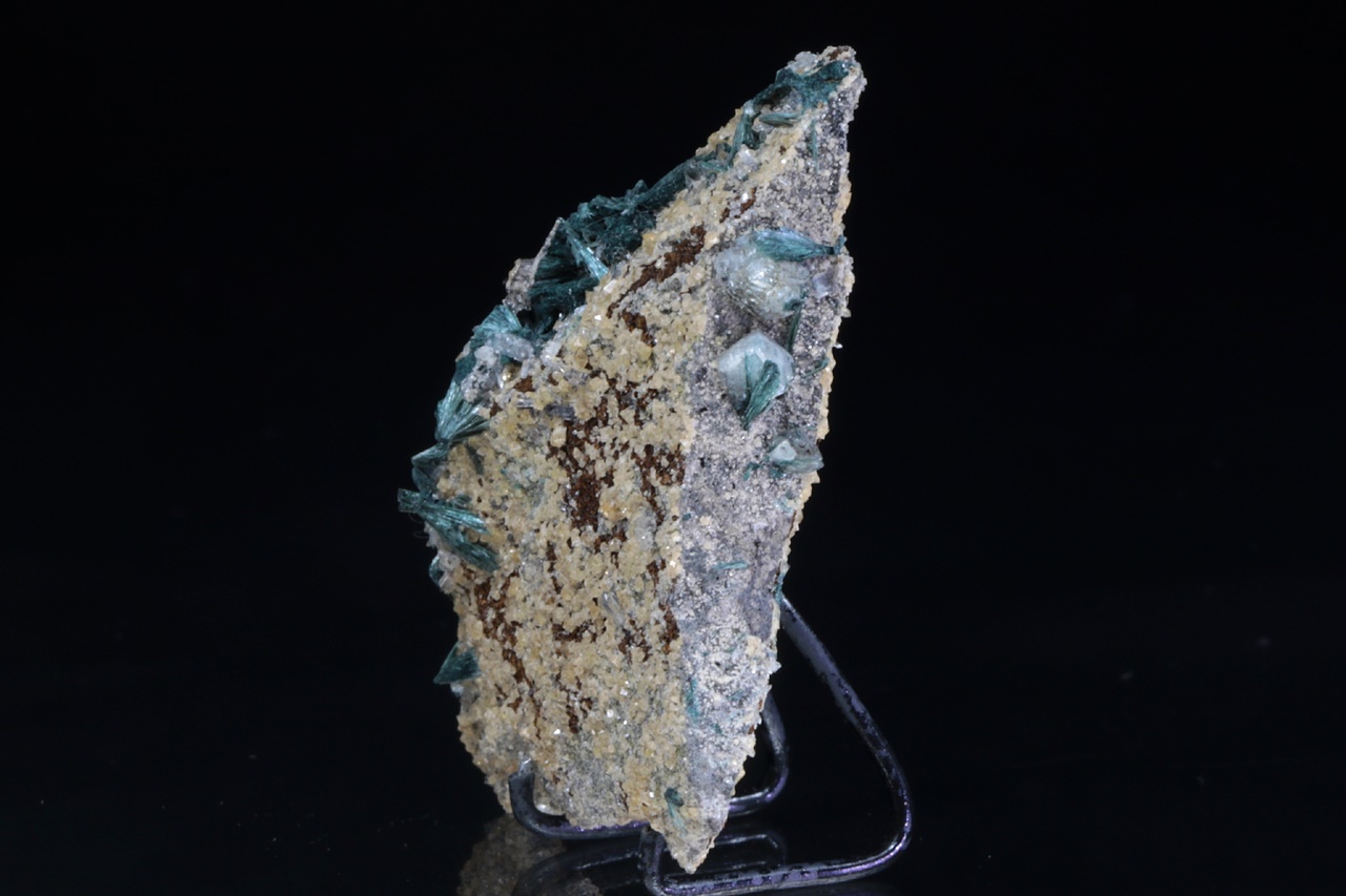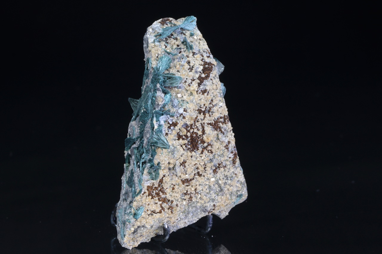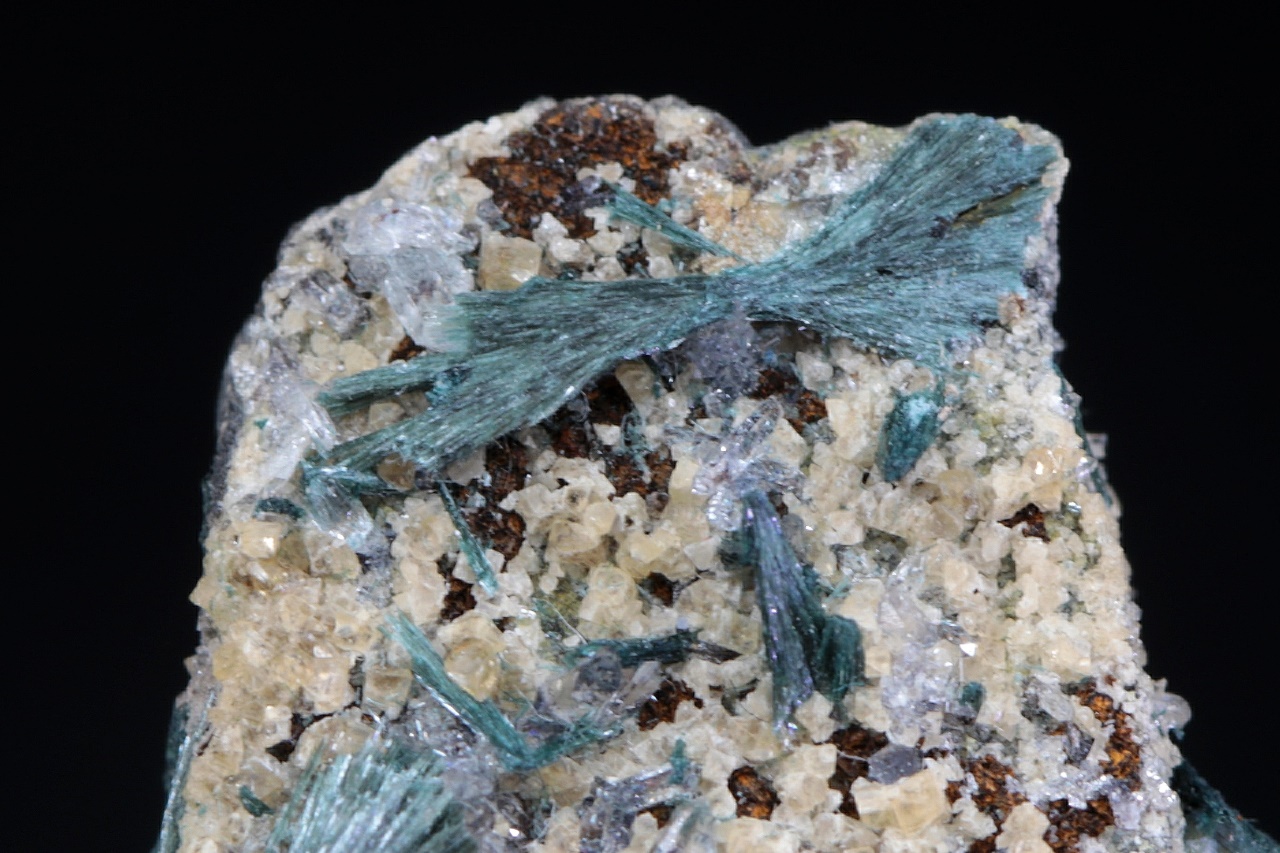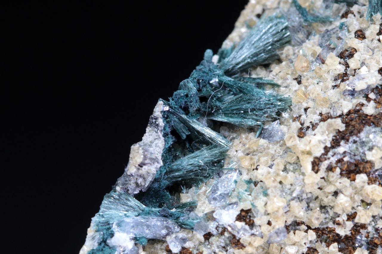 Tmavě zelené, hedvábně lesklé jehlicovité agregáty vzácného fosfátu – gormanitu z typové lokality. Jehličky gormanitu jsou až 7 mm velké.