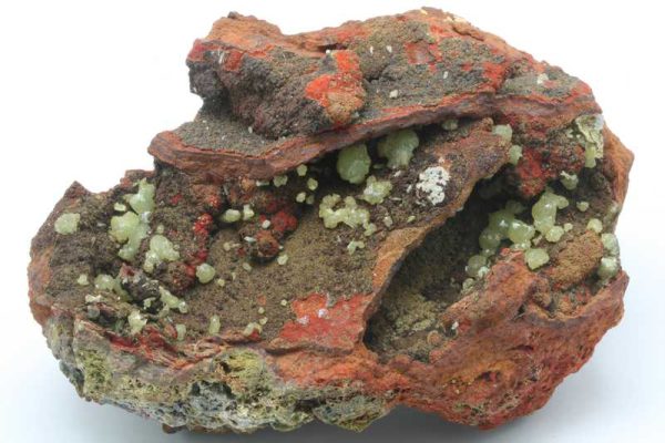 Hezká ukázka arseničnanu zinku – adaminu z lokality Mapimi, Mexiko. Pěkná ukázka žlutozelených agregátů adaminu o velikosti až 6 mm
