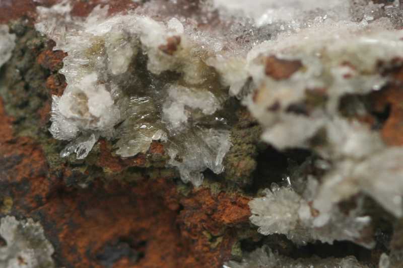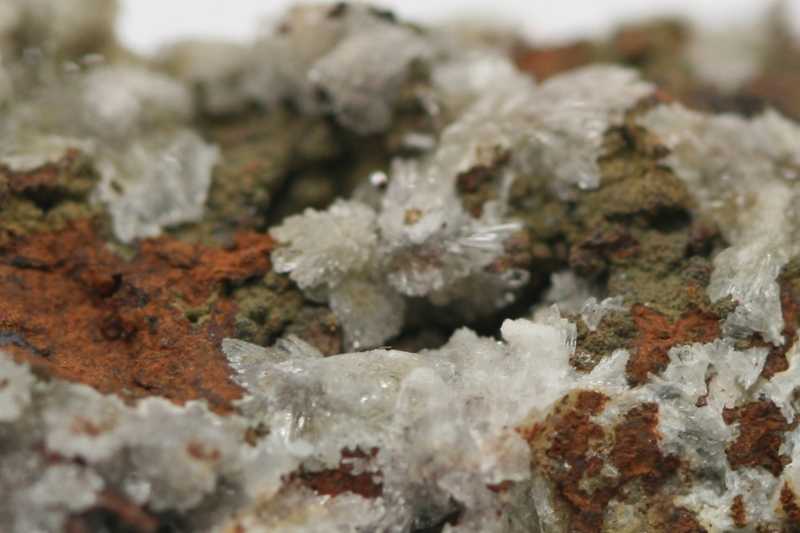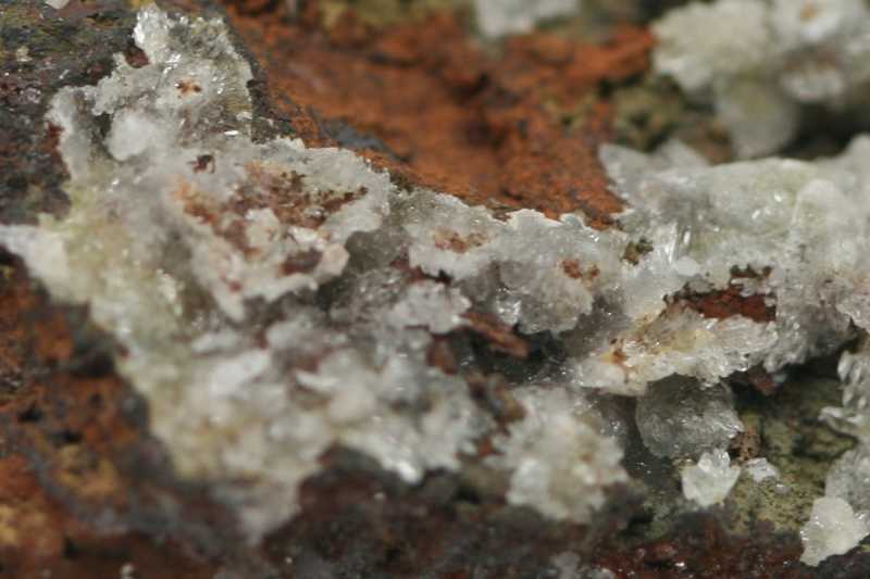 Vzácný arseničnan Zn a Ca z typové lokality.. Drobé bílé krystaly austinitu.