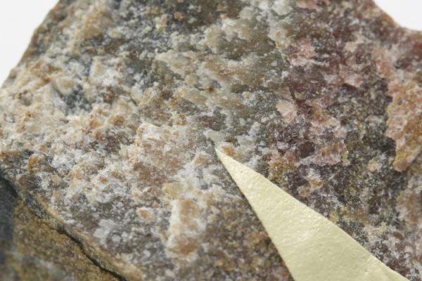 Oranžové zrno vzácného arsenátu berylia a vápníku z typové lokality.