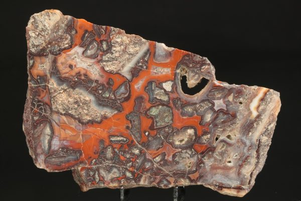 Leštěný achát s výraznou sytě červenou kresbou z klasického naleziště Horní Halže.
