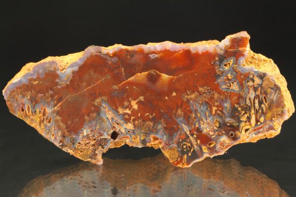 Nádherný achát s červenými žilkami ve tvaru keříků.
