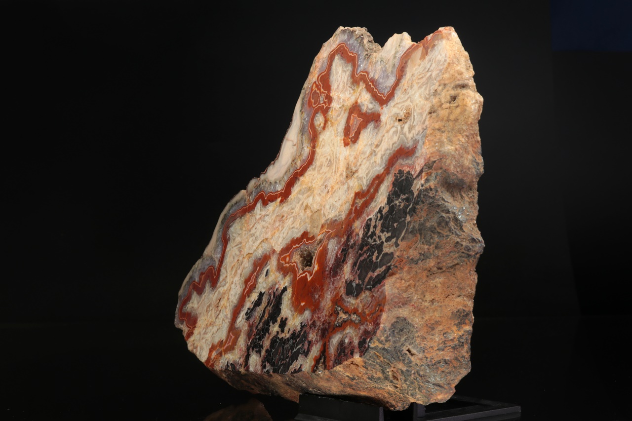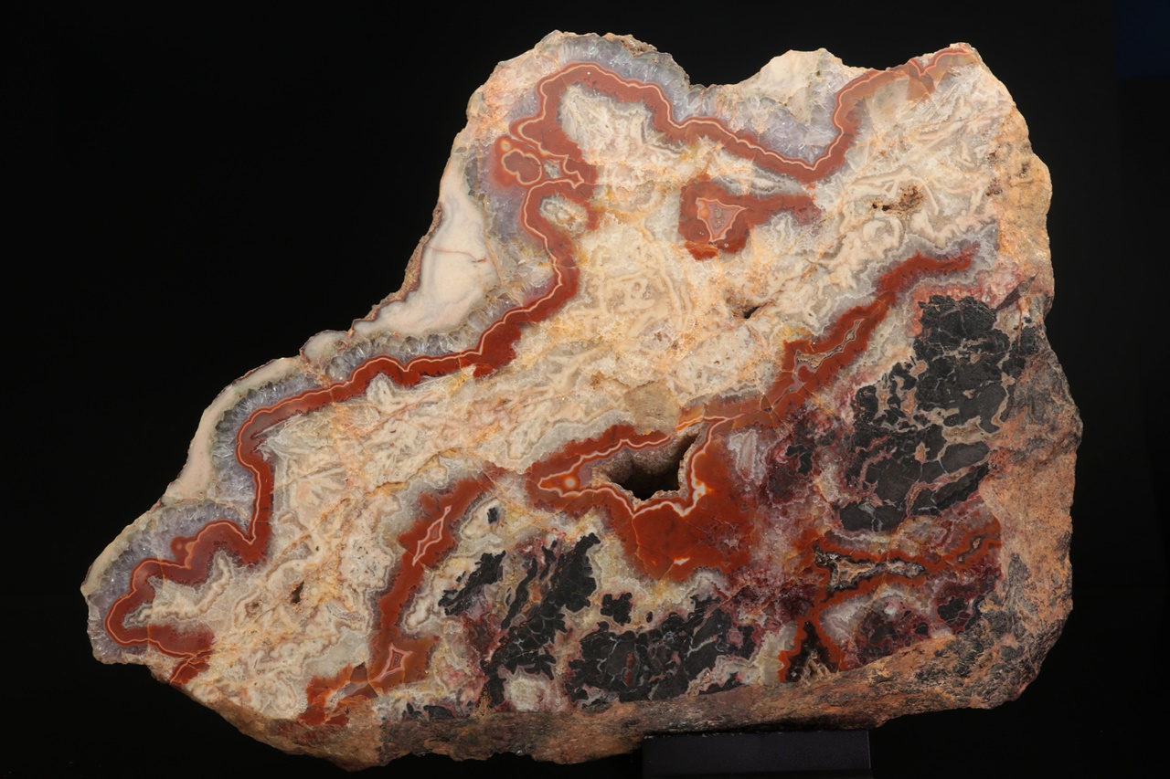 Nádherná, neobvykle velká ukázka achátu z vyhlášené krušnohorské lokality s typickou červenou linkou.