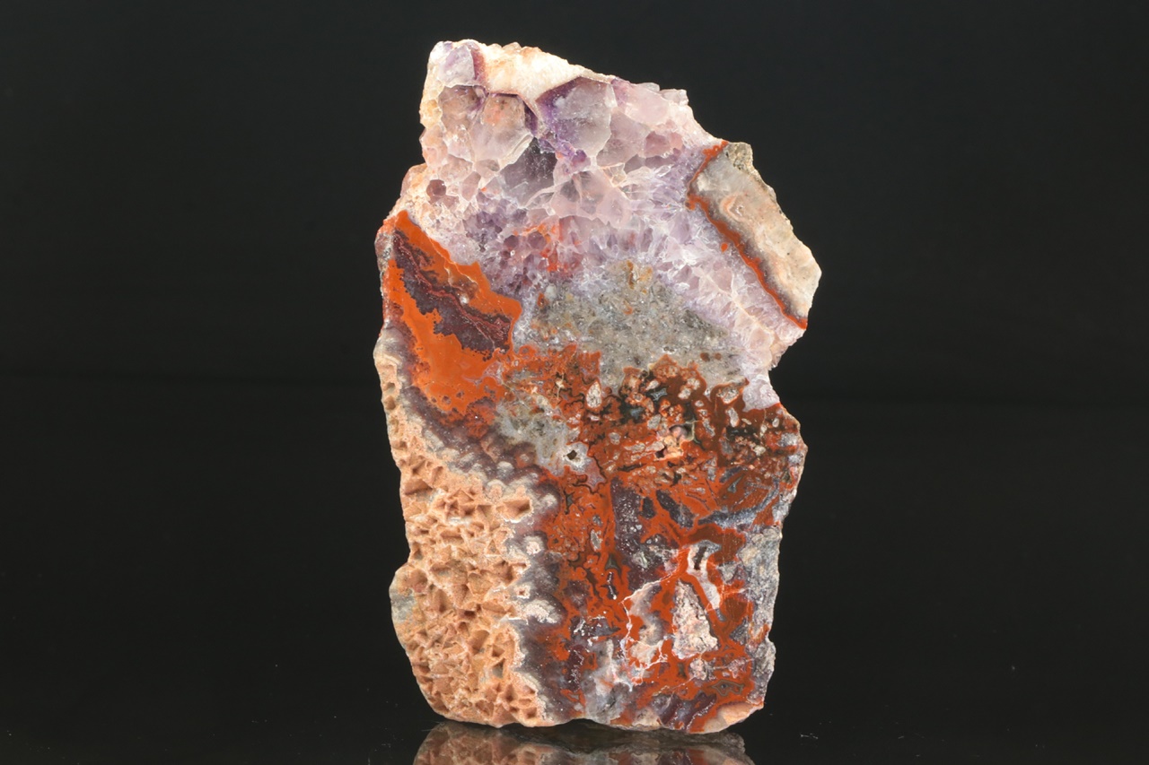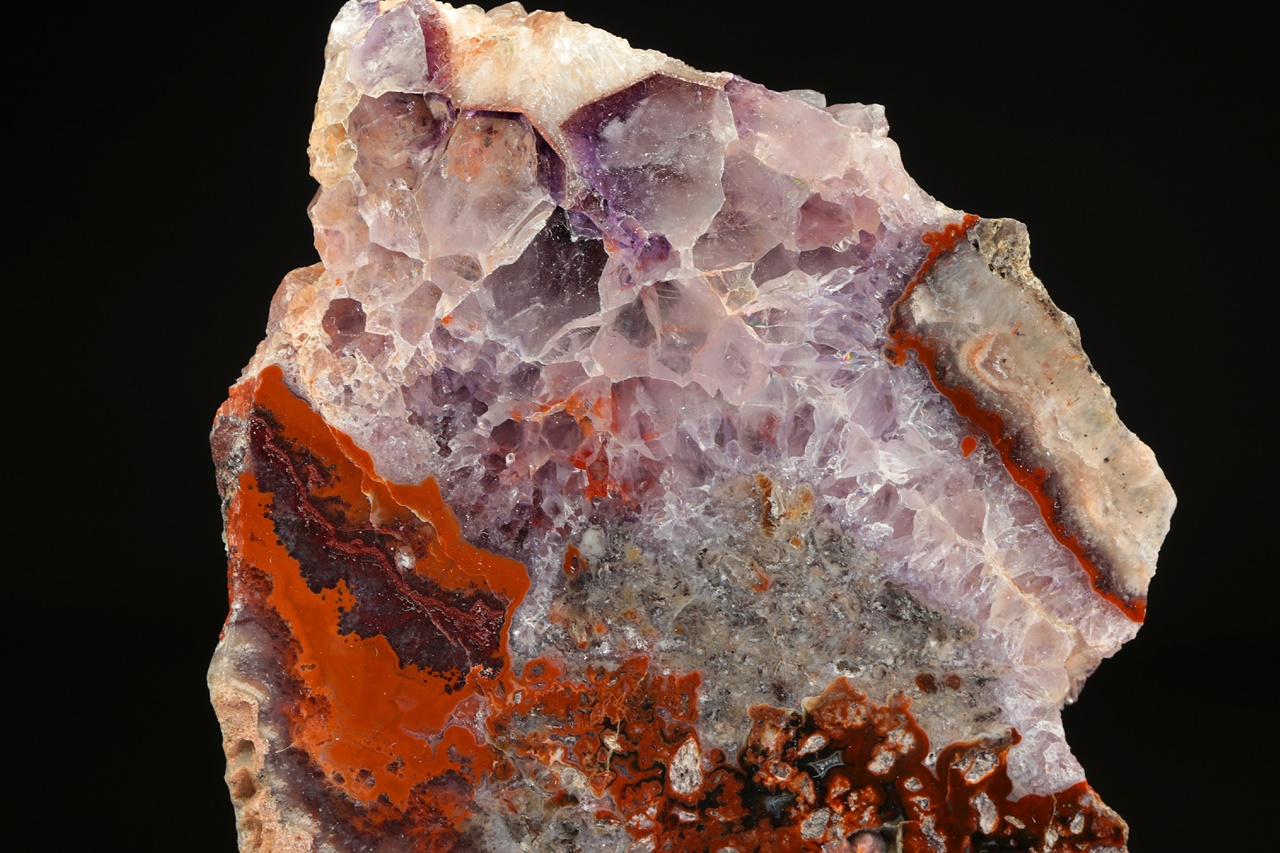 Průsvitný, světle fialový ametyst s intenzivně červeným achátem.