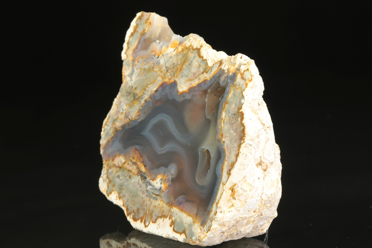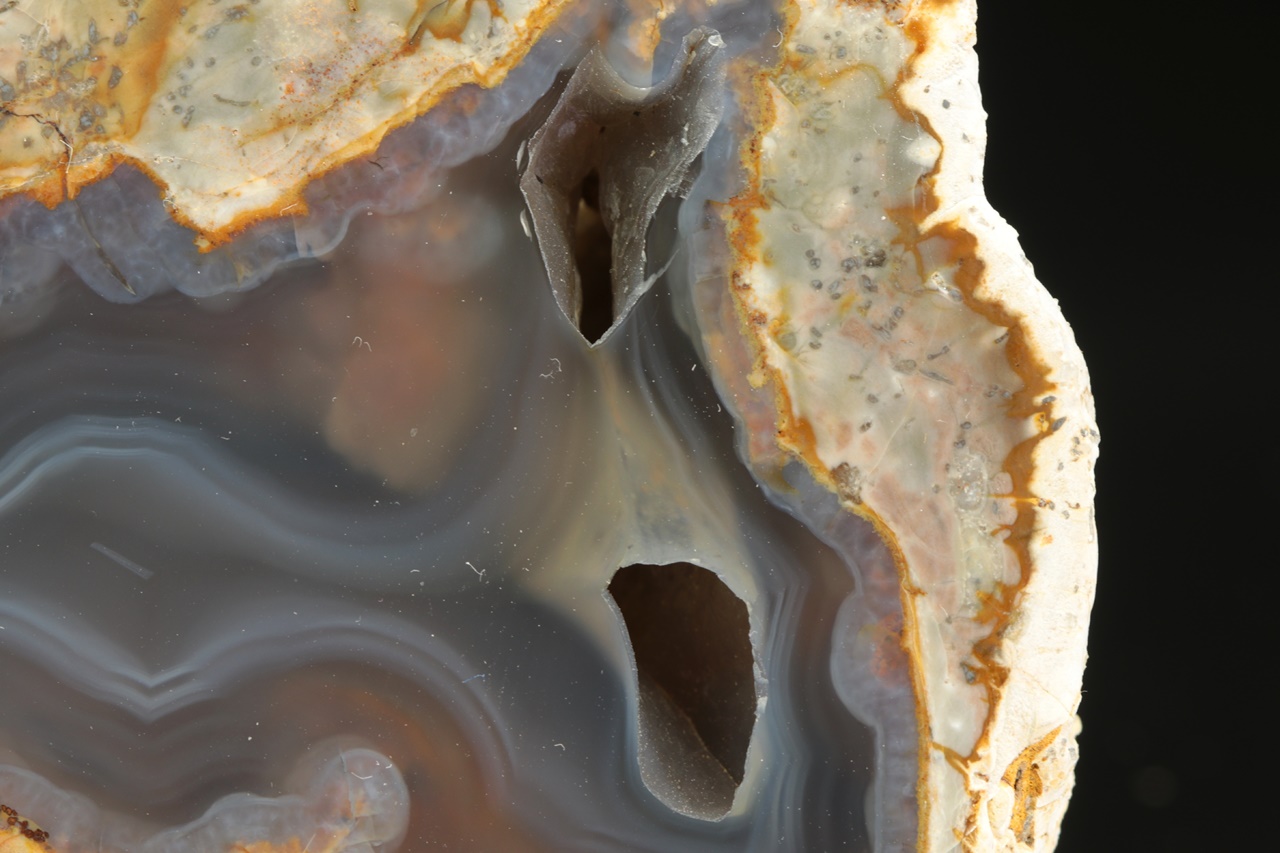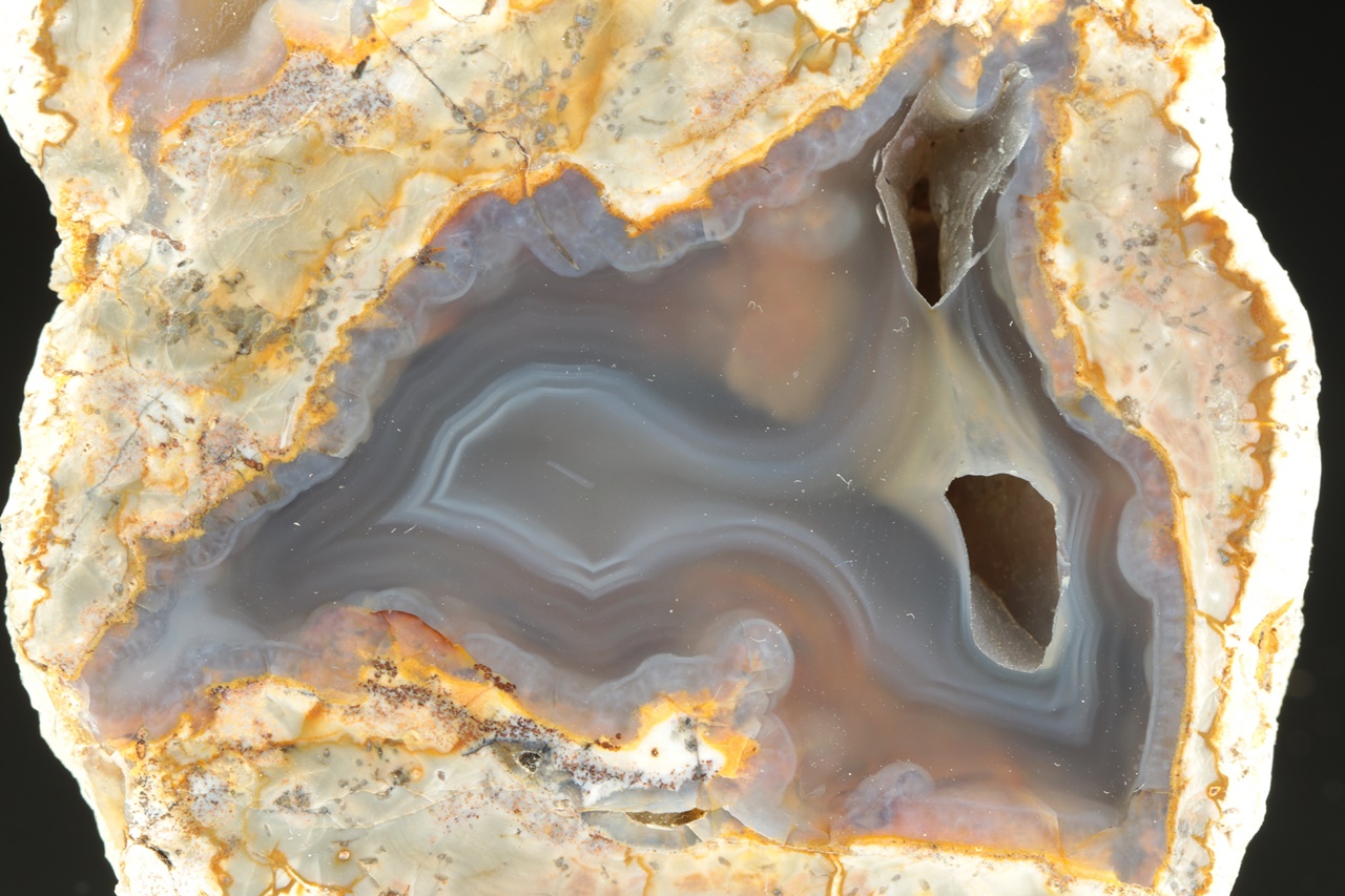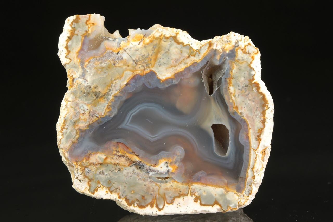 Vzorek průsvitného achátu s dutinou ze známé východoslovenské lokality.