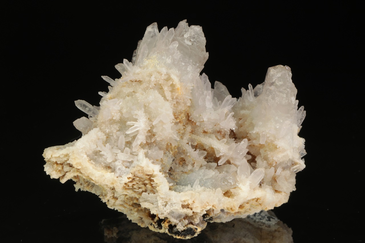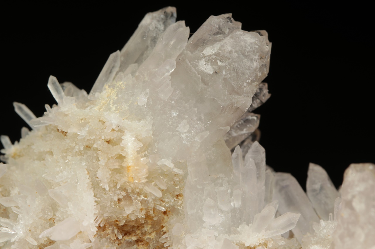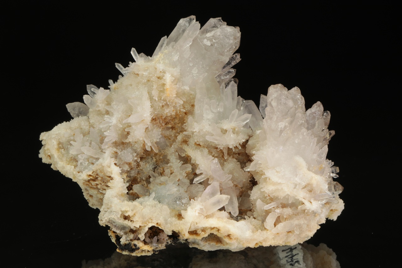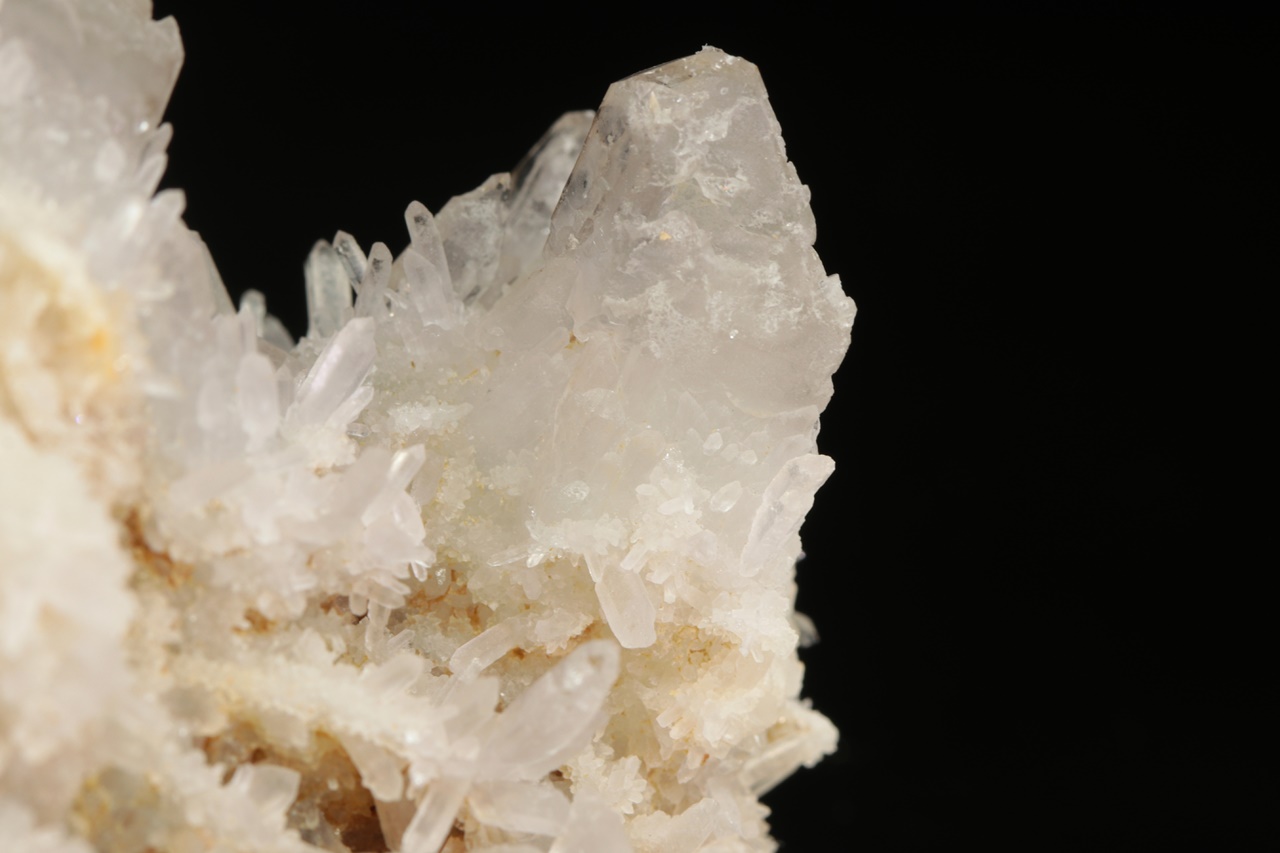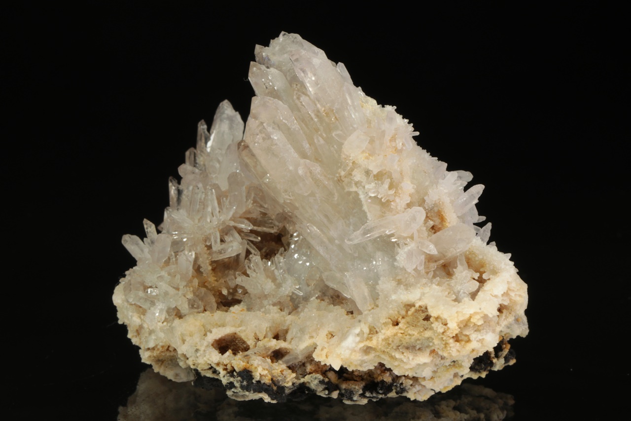Protáhlé krystaly světlého ametystu tvořící trsy okolo většího centrálního krystalu. Vzorek pochází ze žíly Bieber. Větší trs v pravé části vzorku je 5 cm dlouhý.