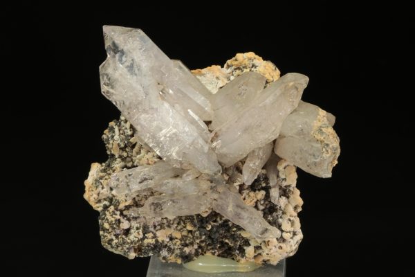 Až 4 cm velké krystaly průhledného, světle fialového ametystu na podložce.