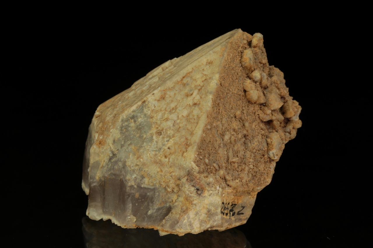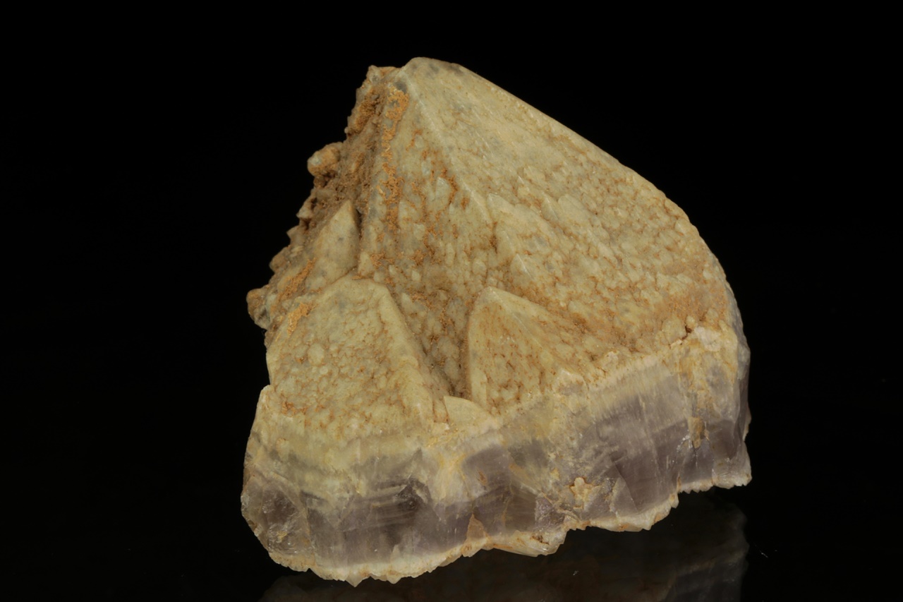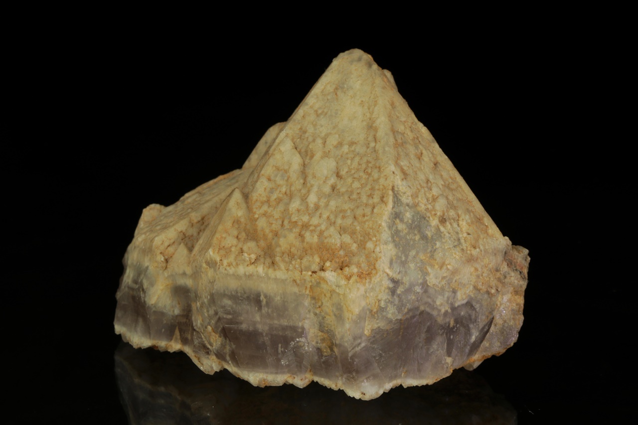 Krystal ametystu ze známé lokality zakončený béžovým křemenem. Krystal byl ze spodní části přírodně ulomen a dohojen mladším křemenem.