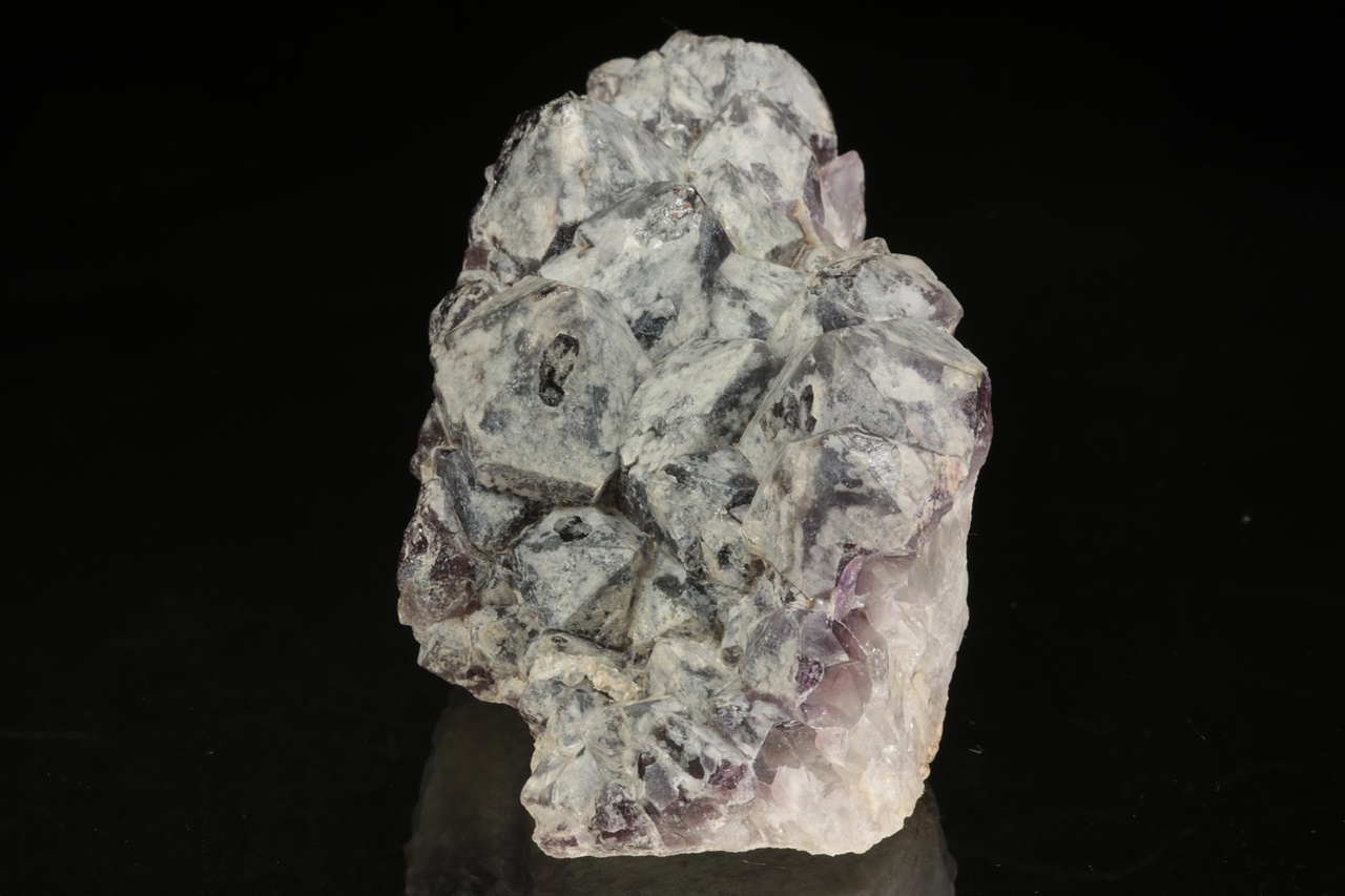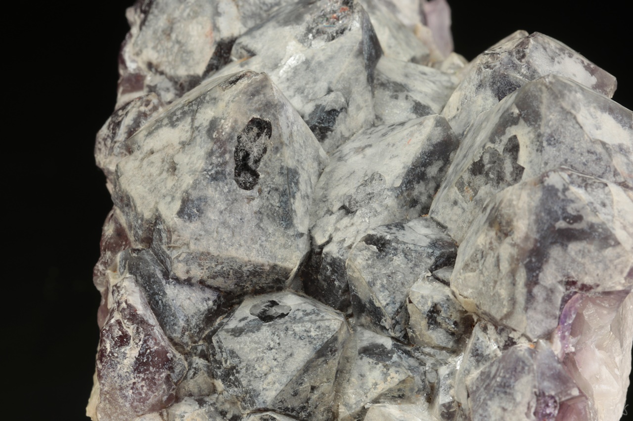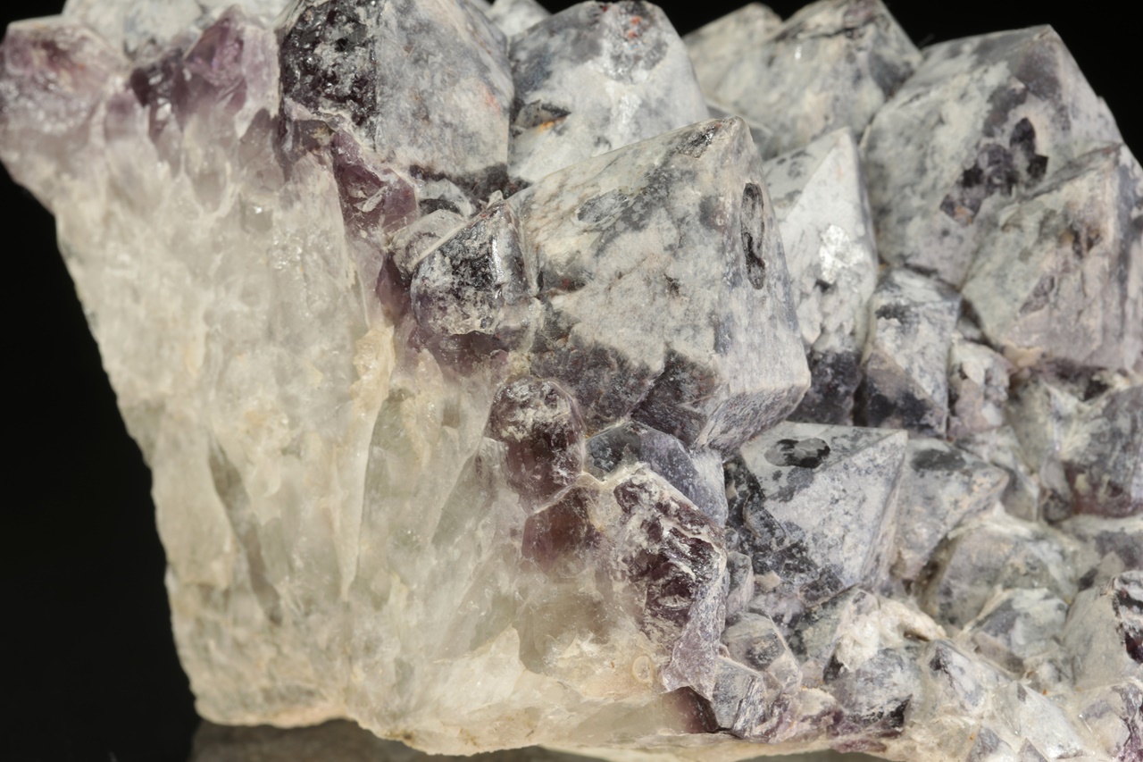Křemenná drůza zakončená intenzivně fialovým, až černým ametystem, který přerůstá mladší povlak bílého křemene.