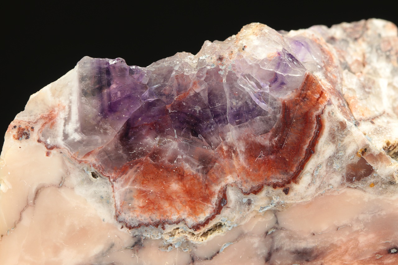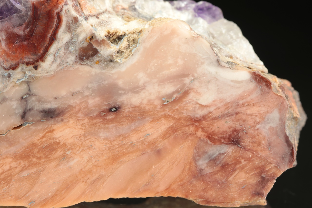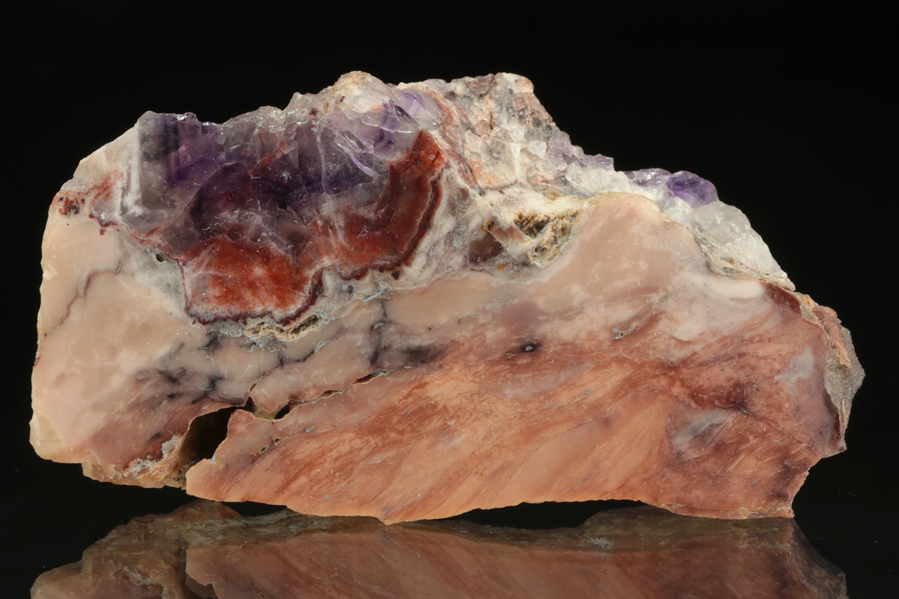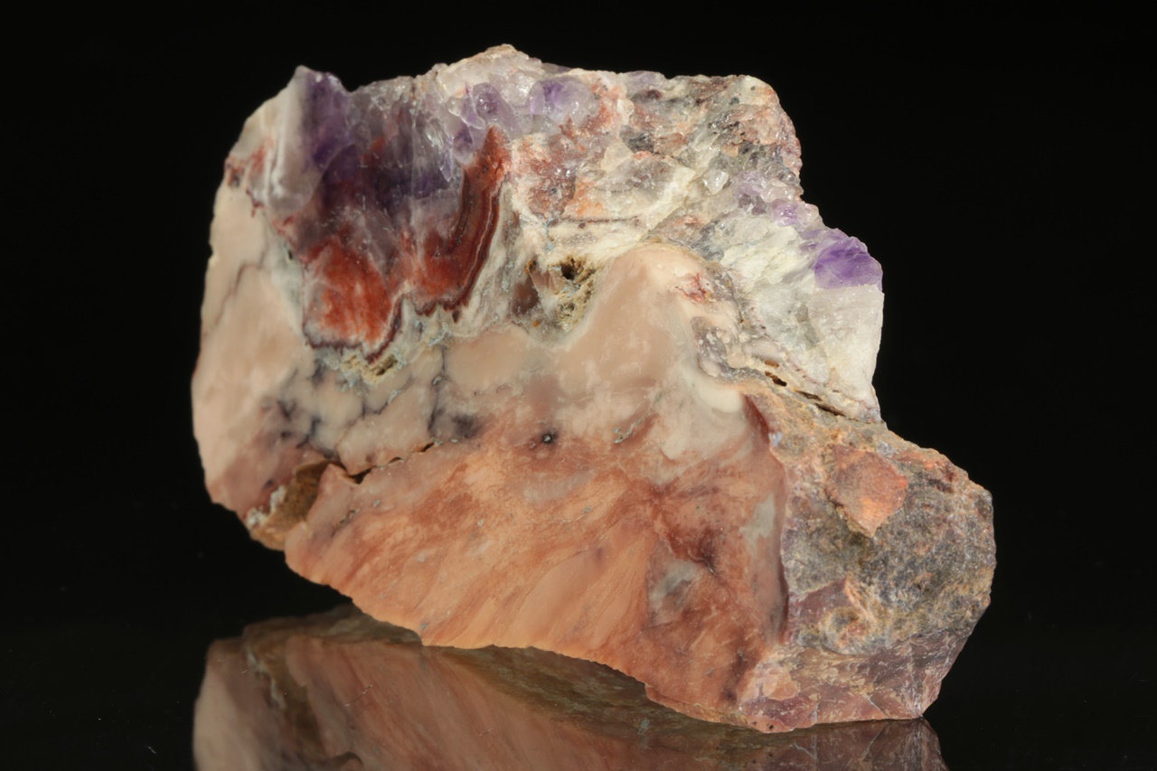 Leštěný vzorek ametystu se světle růžovým jaspisem ze známé krušnohorské lokality.