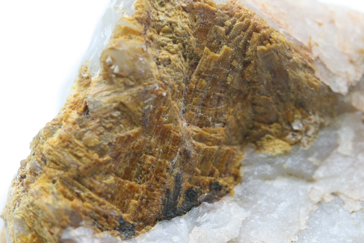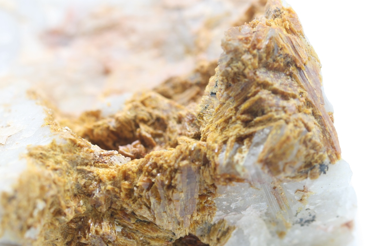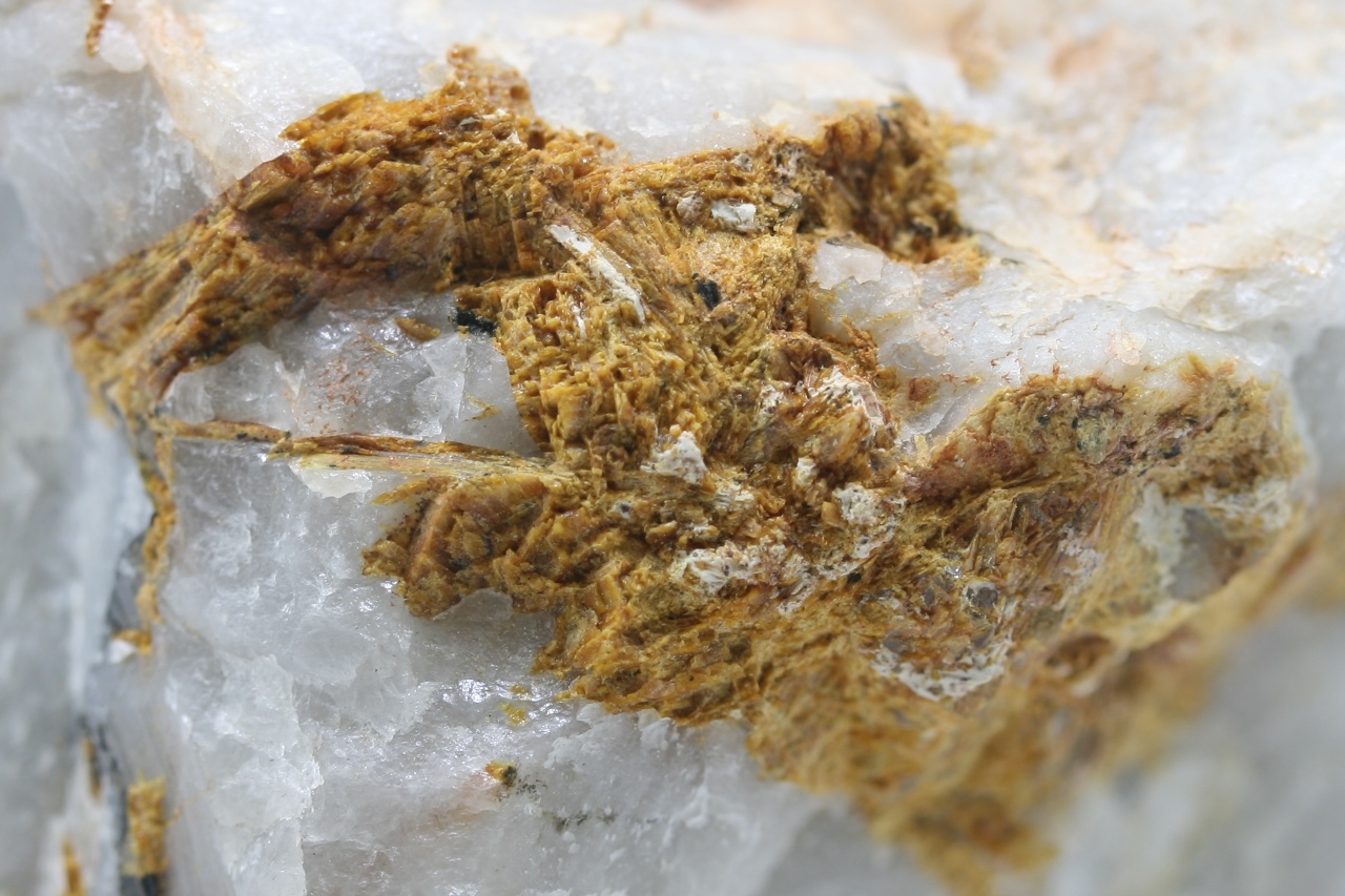 Žluté krystaly a akregáty silikátu arsenu a vanadu z typové lokality.