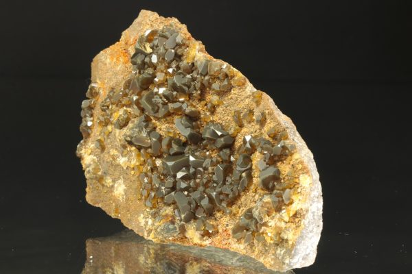 Drúza velmi dobře omezených, lesklých krystalů tmavě hnědého barytu až 1 cm velkých.