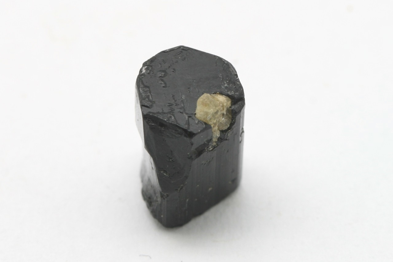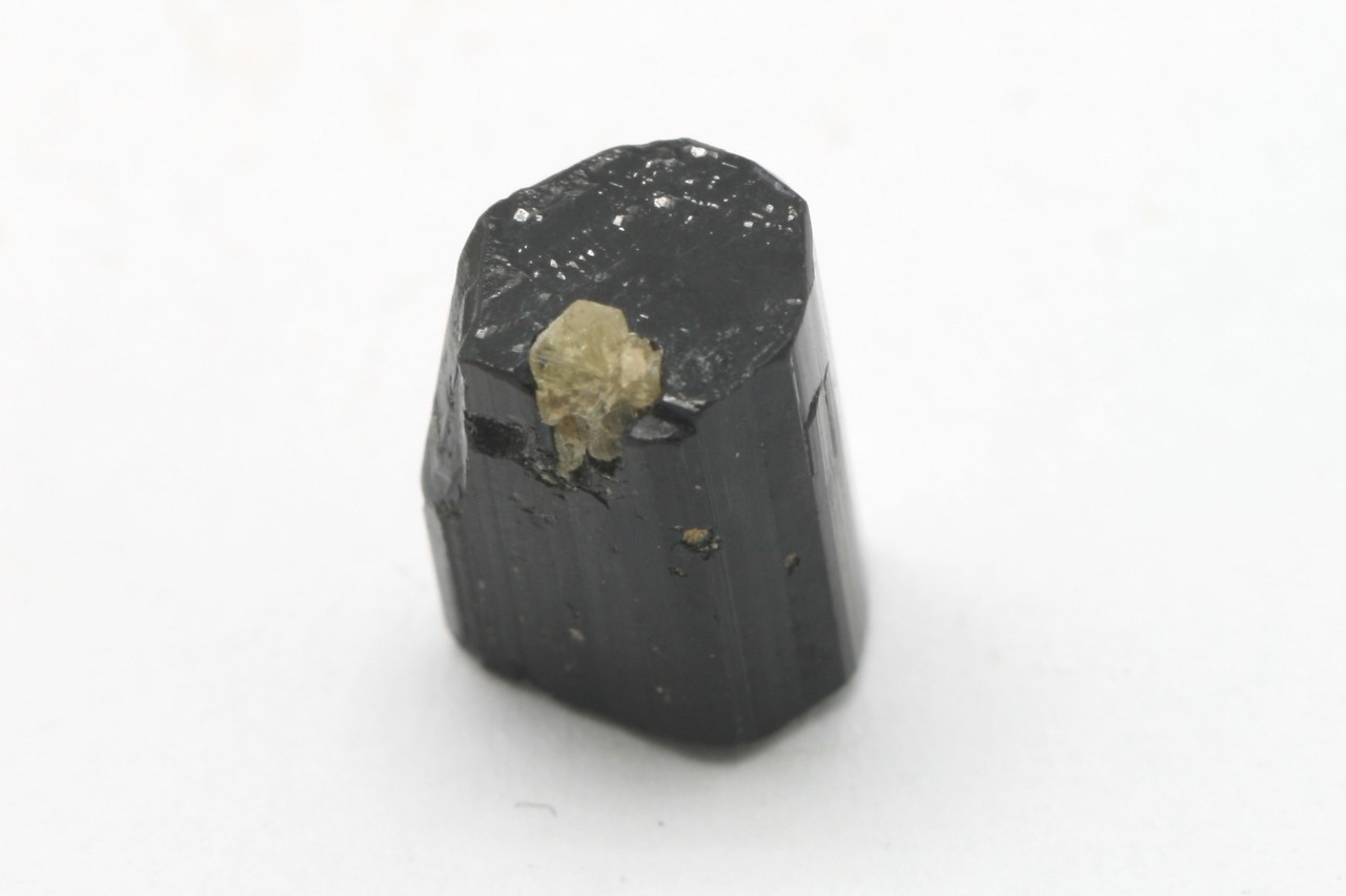 Sloupeček turmalínu s vrostlým žlutým chrysoberylem.