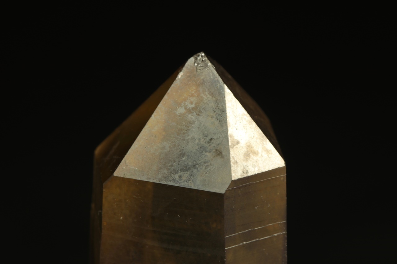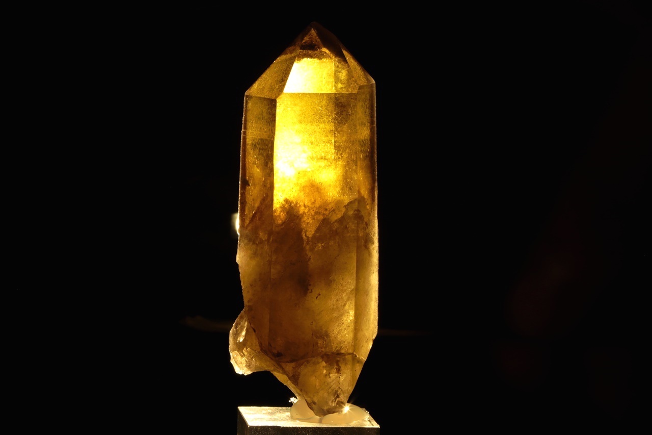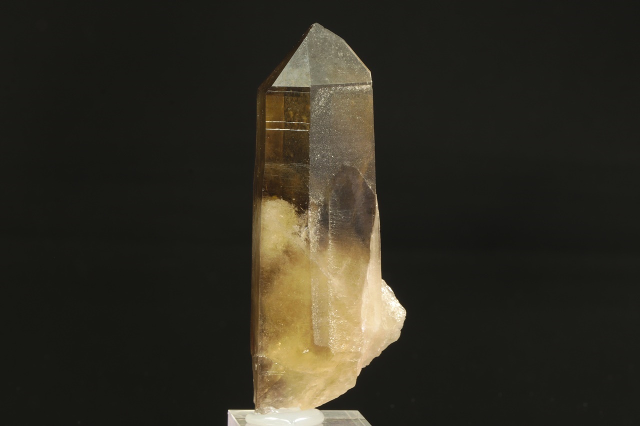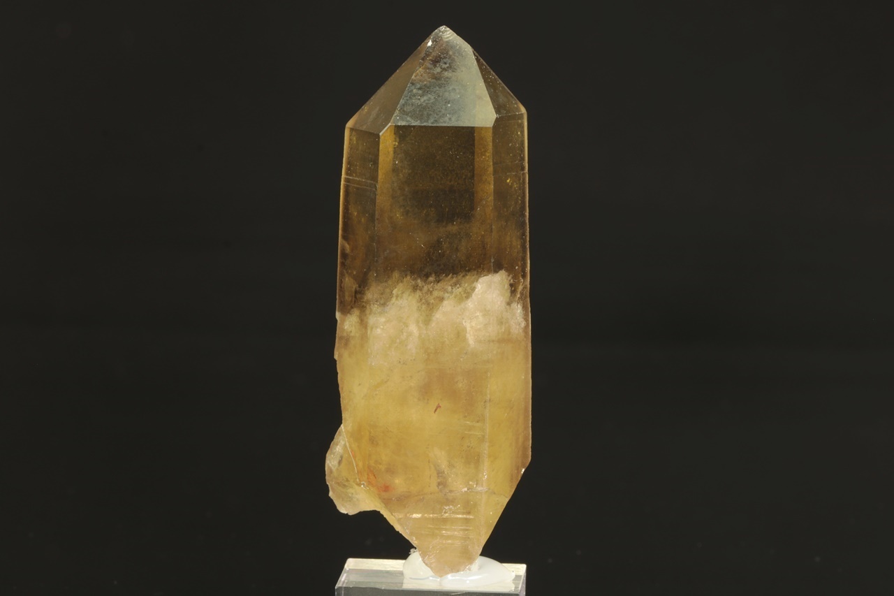 Krásný krystal citrínu, ve kterém vyniká vyjímečně čistá vrchní část.