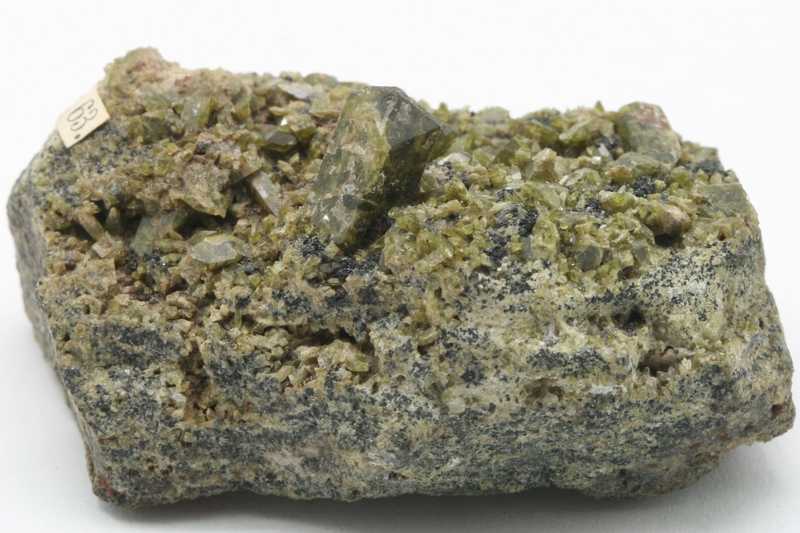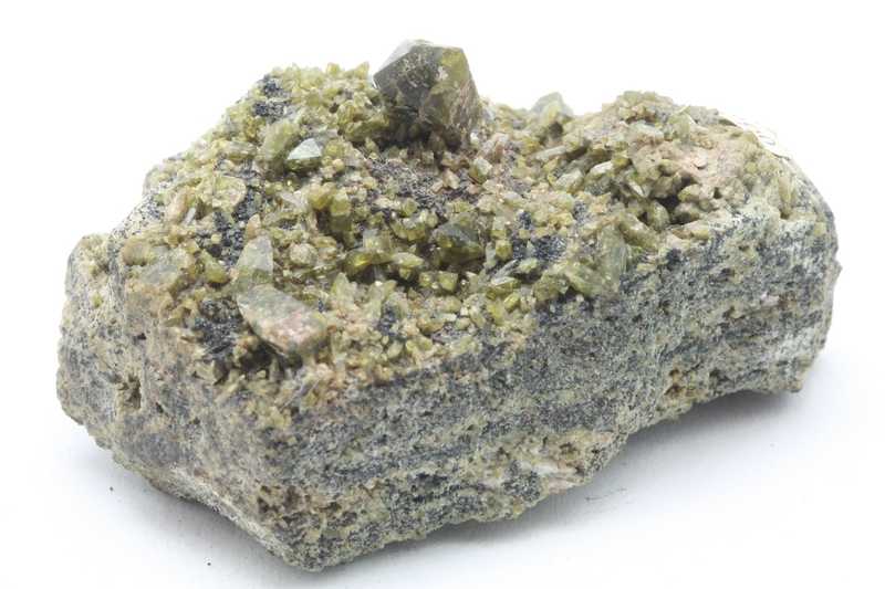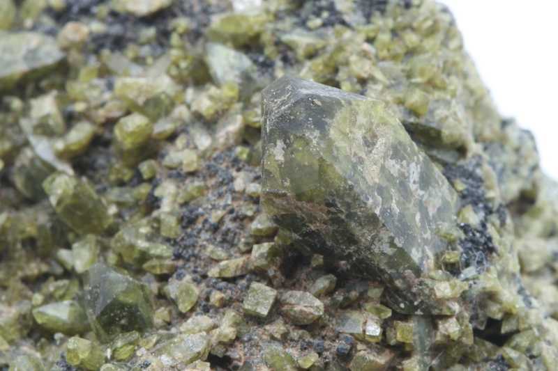 Pěkná ukázka odrůdy diopsidu – fassaitu z Itálie. Vzorek zeleného fassaitu