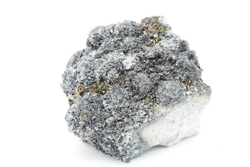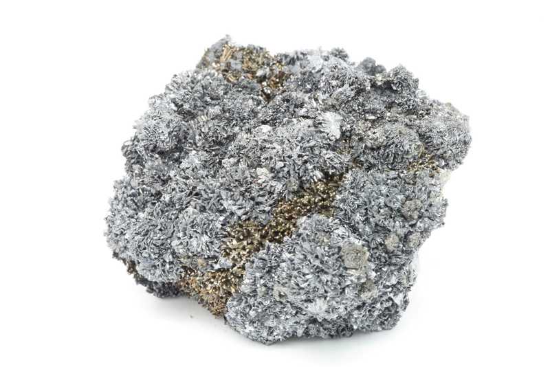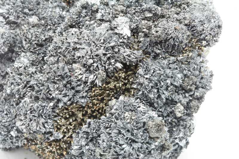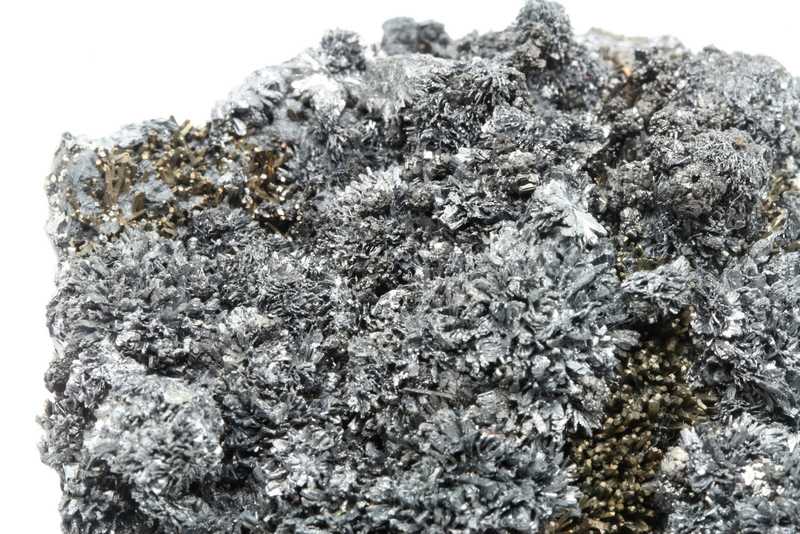 Muzejni ukázka krystalovaného antimonu, cínu, železa a olova franckeitu z Bolívie. Sbírková ukázka neobvykle velkých (až 5 mm) lupenitých krystalů nepříliš běžného franckeitu, komplexní sulfosoli, z jeho bolívijské typové lokality.