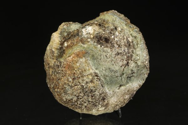 Ukázka tzv. heřmanovské koule. Jádro koule tvoří tmavý lesklý flogopit, který je po celém obvodu lemovaný paprsčitě uspořádanými jehlicemi stříbrně šedého antofylitu. Vnější okraj koule opět pokrývá tenká vrstvička šupin flogopitu. Jedná se o velmi raritní mineralogickou zajímavost.