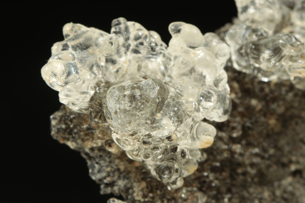 Dvě bohatě narostlé korunky čirého opálu. Rozměry korunek jsou 3 a 2 cm. Korunky jsou nepoškozené.