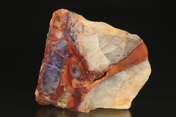 Brekcie tvořená bílým křemenem a ametystem stmelená cihlově červeným jaspisem z vyhlášené krušnohorské lokality.
