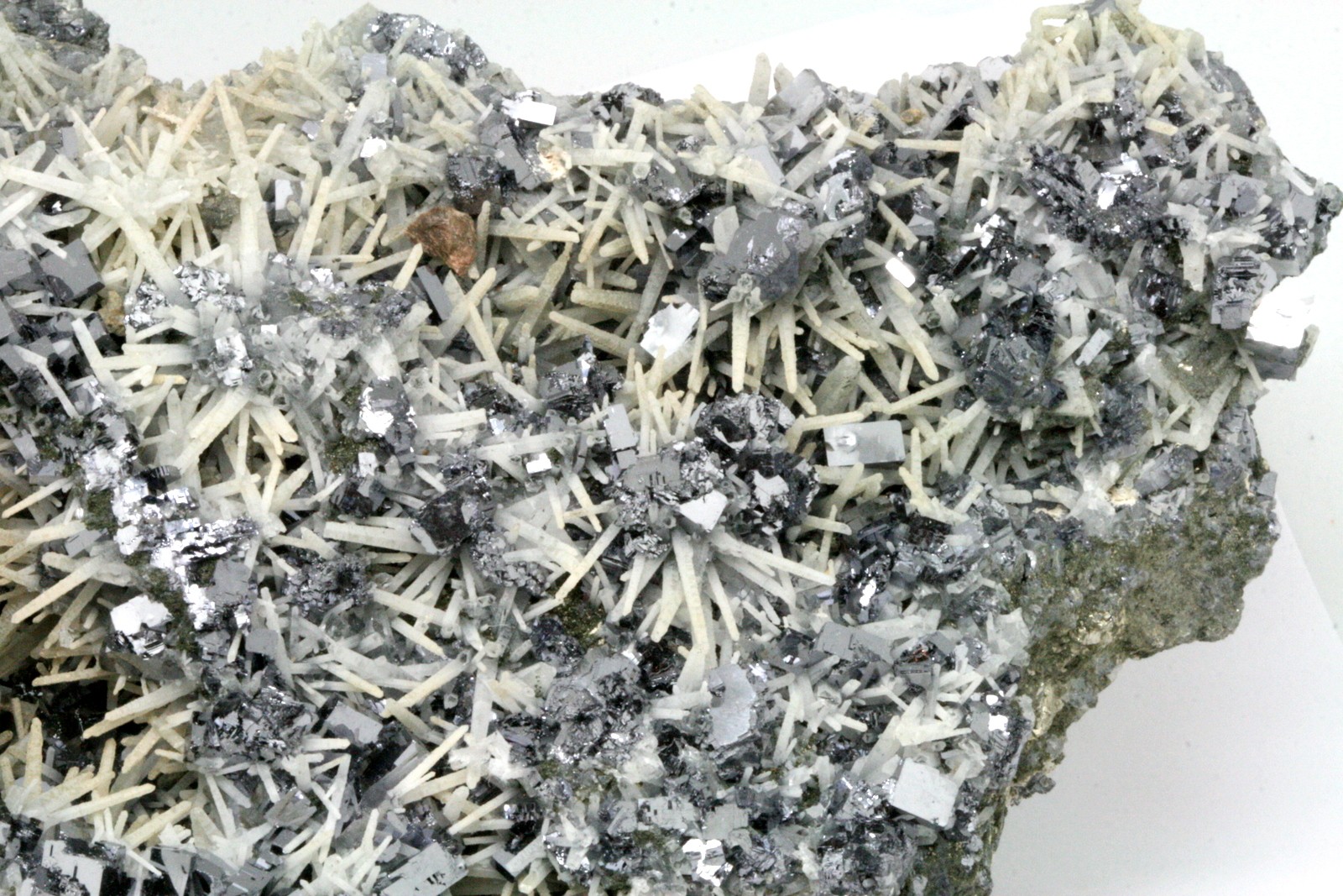 Velmi estetická drůza křemenů na které narůstají kostrovité krystaly galenitu o velikosti až 20 mm.