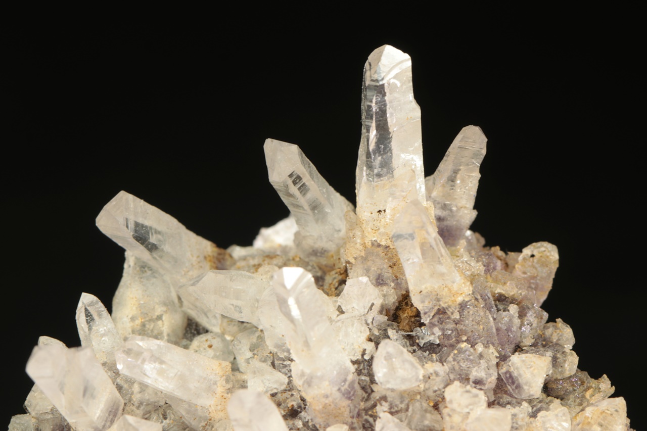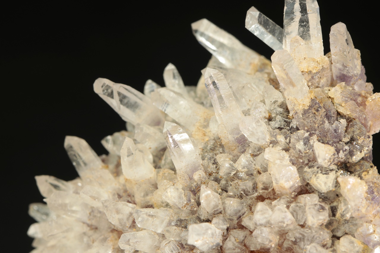 Drúza křišťálů 2 cm velkých narůstajících radiálně do prostoru.