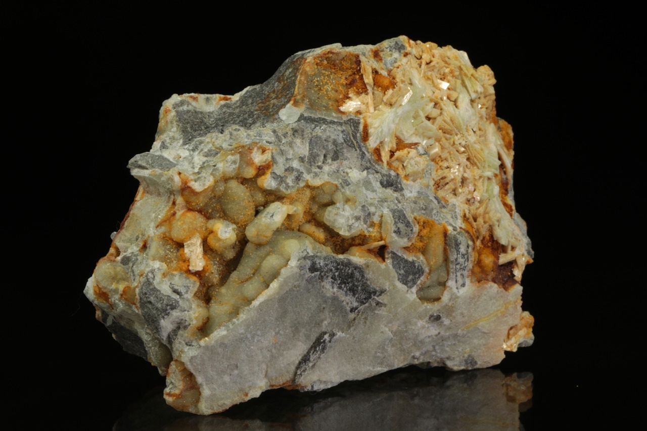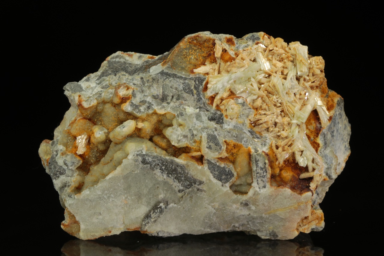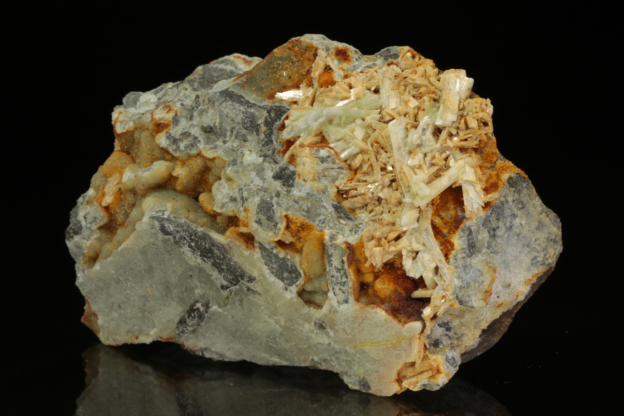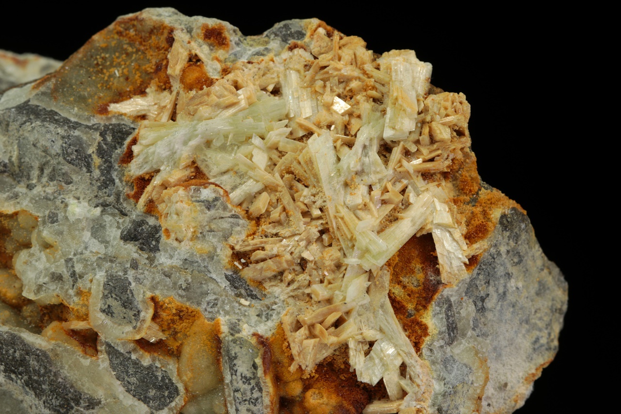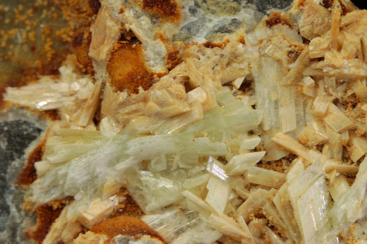 Perleťově lesklé nazelenalé krystaly paravauxitu nahrazované tmavším béžovým sigloitem. Pro sigloit je tato lokalita typová. Největší krystal paravauxitu je 1 cm velký.