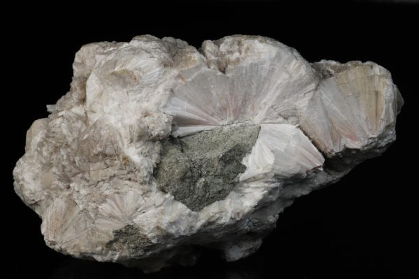 Bohatý vzorek radiálně paprsčitých až 5 cm velkých agregátů bílého pektolitu z klasické lokality kamenolomu v Košťálově.