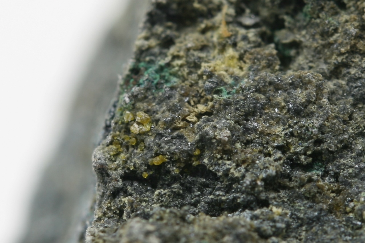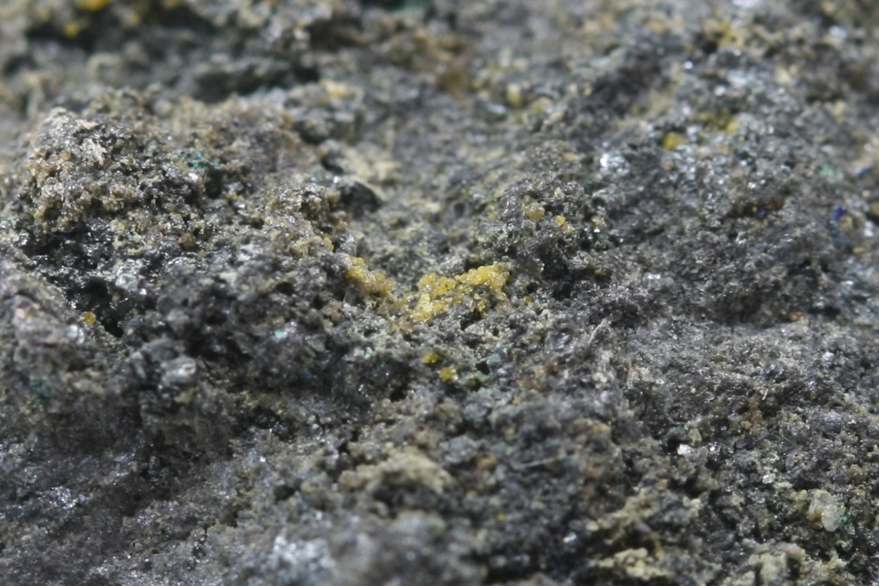 Žluté bipyramidy vzácného hydroxidu zinku a manganu.