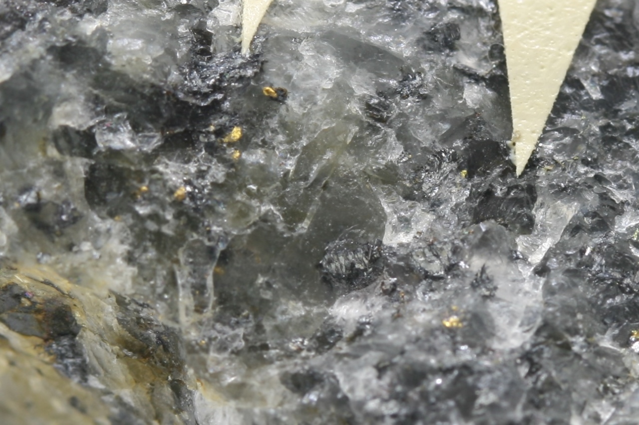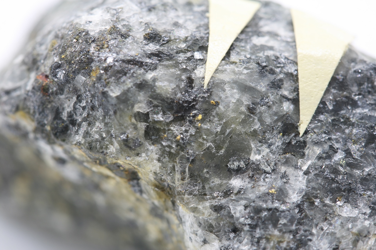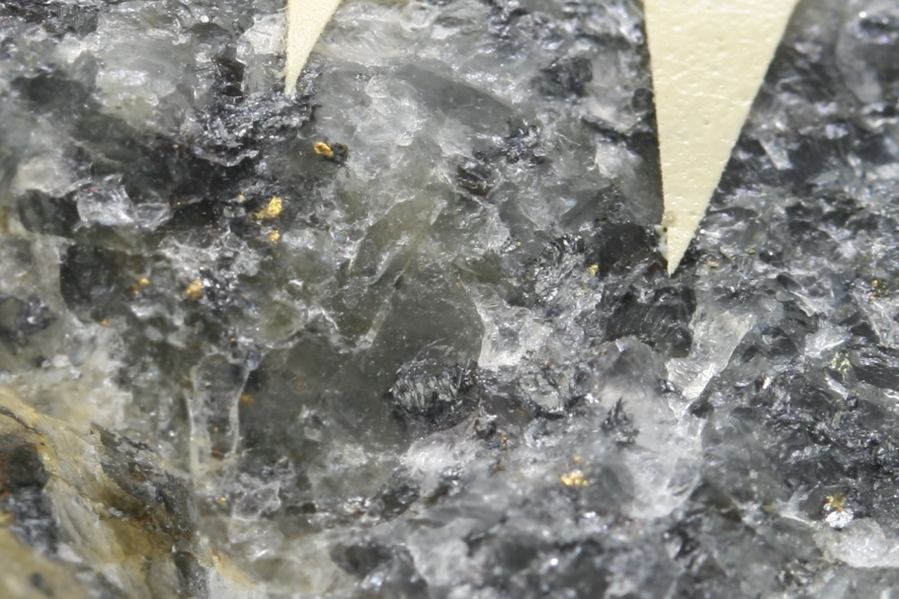 Šedá, kovově lesklá zrna vzácného sulfidu z typové lokality.