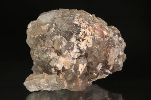 Oblá drúza krystalů světlé záhnědy. Na povrch krystalů jsou velmi dobře vidět přírodní lepty, ale zároveň na ně narůstají krystalky mladší generace křemene.