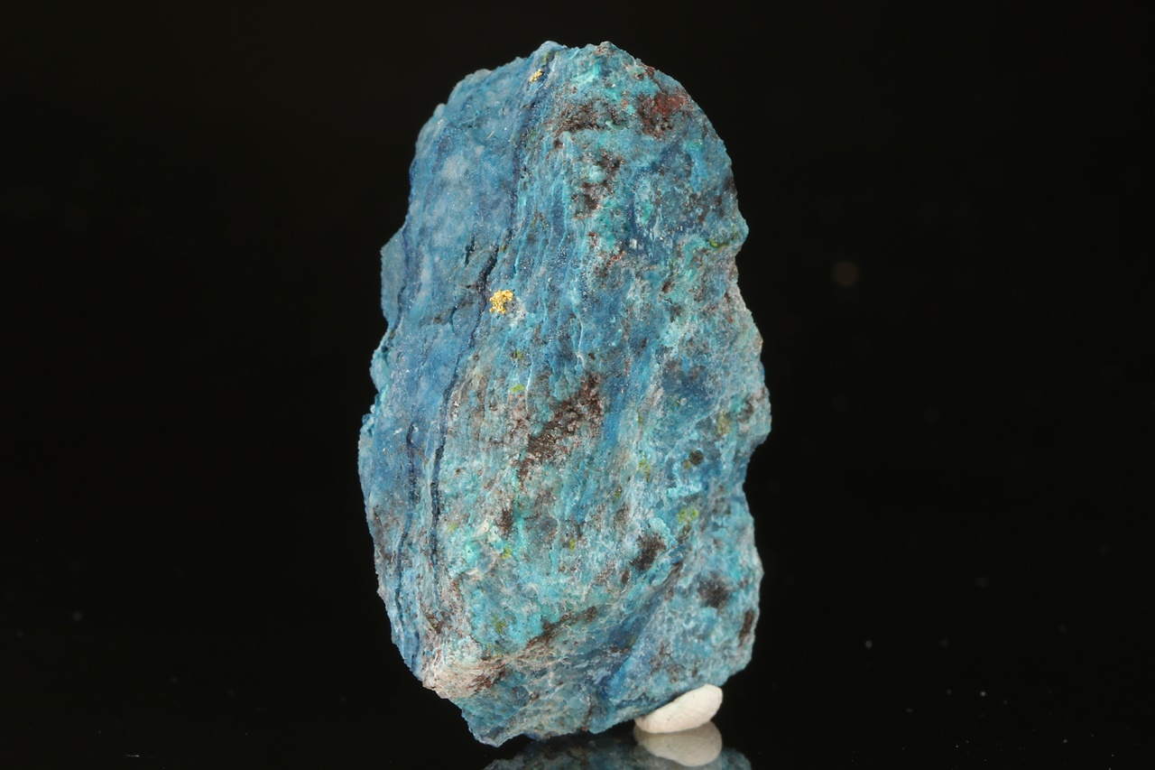 Neobvyklá a velmi elegantní kombinace agregátů ryzího zlata v kontrastním modrém shattuckitu drahokamové kvality. Agregáty zlata jsou vellké 1  a 1,5 mm.